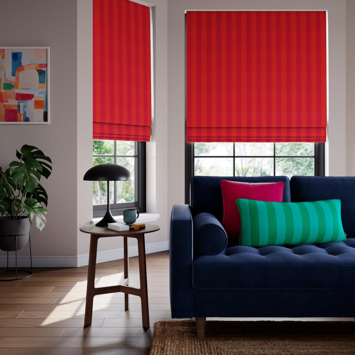 * High Quality 100% Cotton composition * Bold striped design in a range of vibrant colourways * Choose from 3 linings * Select your fitting type * Pick a side for the operating chain * Coordinating Made to Measure and Made to Order items available to purchase separately Timeless, bold, and effortlessly stylish, the Elements Stripe Roman blinds feature a striking contrast stripe pattern in a selection of contemporary colourways. Crafted from 100% high-quality cotton, they offer a soft yet durable texture, ensuring a premium finish that elevates any room. The Roman blind design highlights the fabric’s crisp structure, offering a sleek and polished look. Available with blackout or thermal lining options for added practicality.