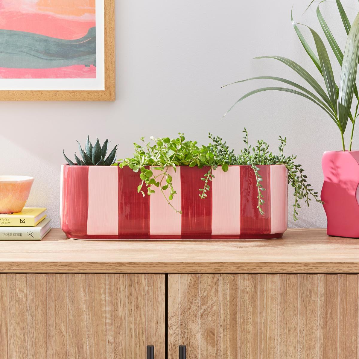 * Bold Striped Design* Comprised of Ceramic Perfect for dressing your windowsills, this beautiful plant pot - brought to you by Dunelm's in-house brand Elements - would make the perfect addition to your home. Comprised of durable ceramic, it boasts a bold eye-catching design that is sure to make a statement.