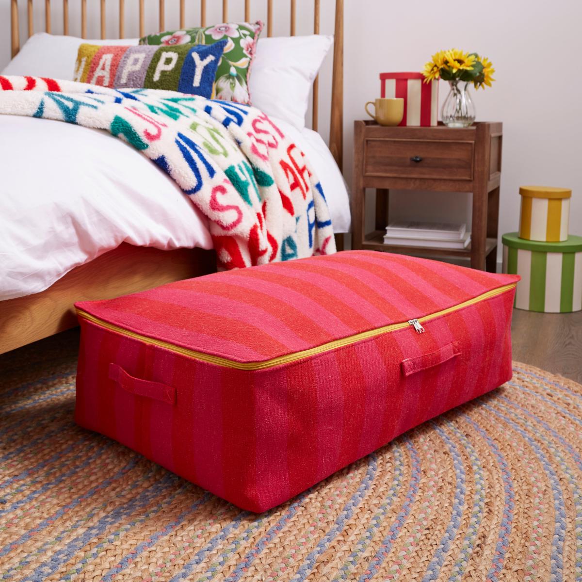 Elements Sutton Woven Stripe Underbed Storage Bag Pink