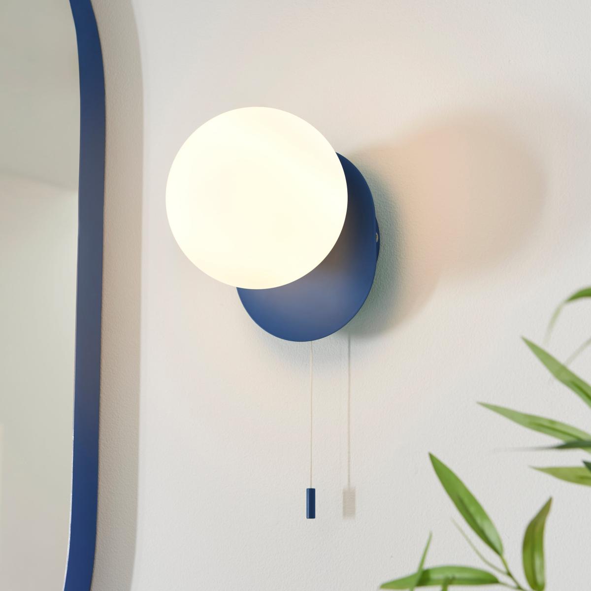 I love how the blue shade on this wall light adds a subtle pop of colour without overwhelming a space. It works particularly well in contemporary or minimalist bathrooms, where clean lines and simple palettes are the focus. The soft, diffused glow makes it both functional and calming, perfect for preening routines or winding down. Practical styling tips include placing it beside a mirror for balanced lighting or letting it serve as a statement piece against a neutral wall. To keep the look fresh, pair it with other blue or navy accents, or incorporate natural materials like wood or stone for a balanced, modern vibe.