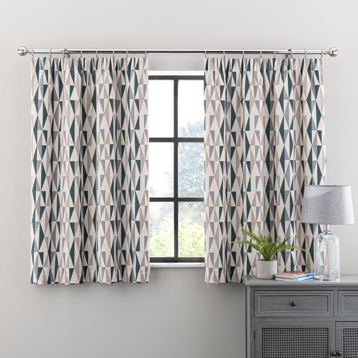 I love these Elements Triangles Peacock curtains for their bold geometric pattern and versatile colour palette, making them a stylish focal point. They work particularly well in contemporary or eclectic interiors, adding visual interest without overwhelming the space. For styling tips, consider pairing them with neutral walls and simple accessories to let the pattern stand out, or team them with accent colours found within the print for a coordinated look. Their pencil pleat design provides flexibility in hanging options, making them suitable for both classic and modern window frames. Overall, they’re a practical choice that combines pattern with functionality, perfect for injecting character into a living room or bedroom.