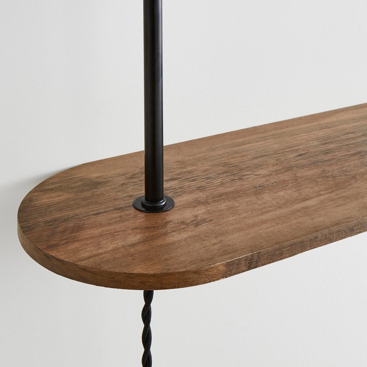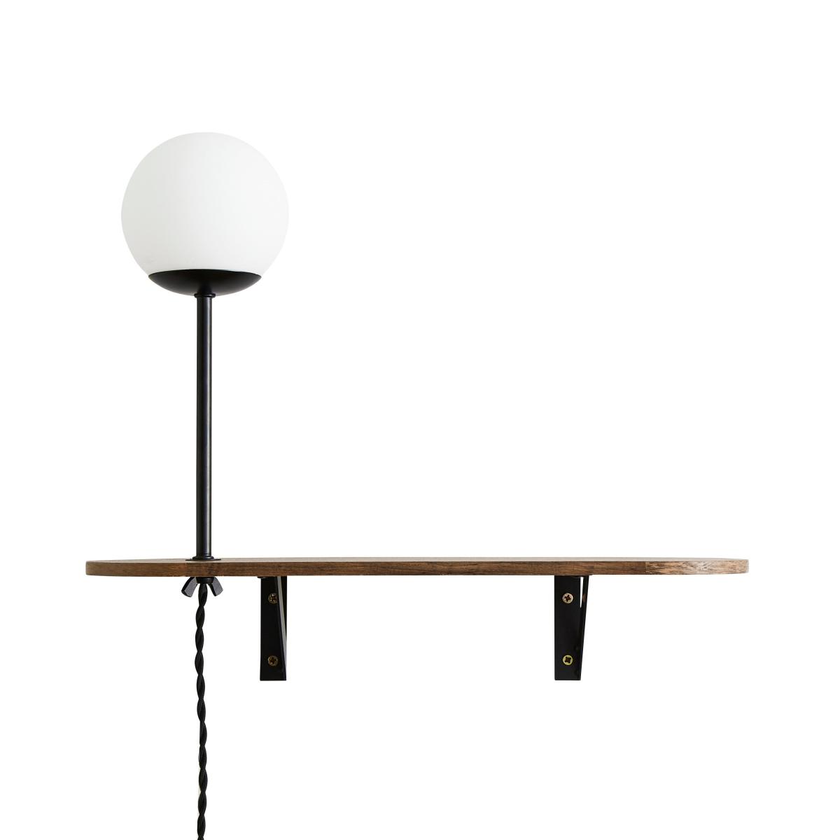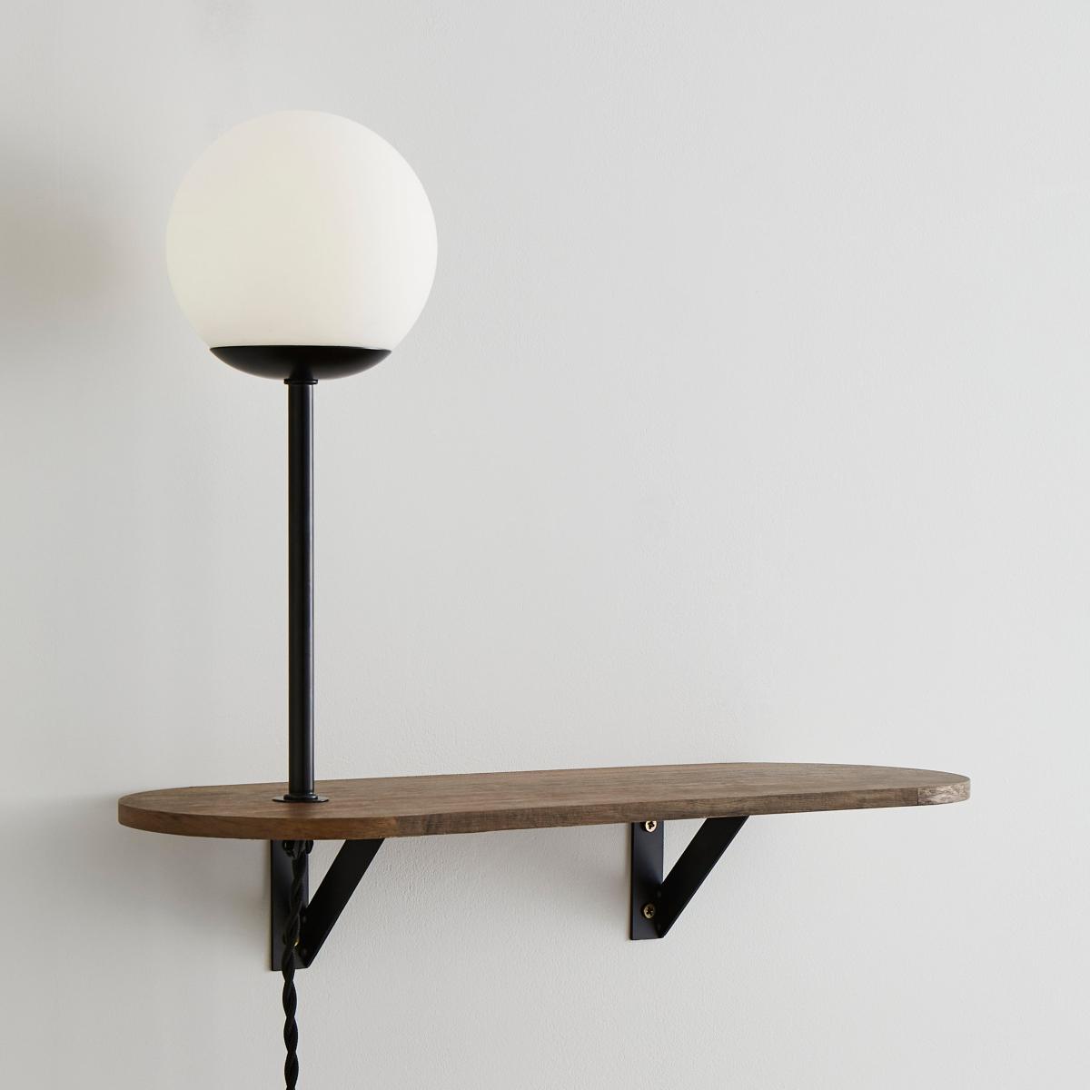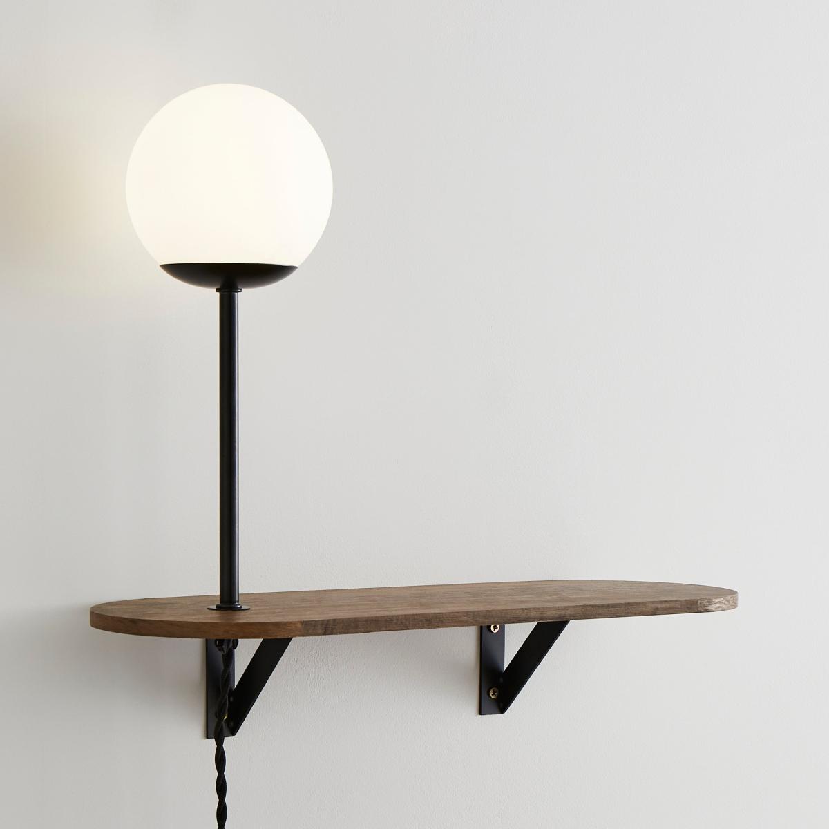 The Elements Visby Shelf Wall Light is a multifunctional design, perfect for displaying ornaments or decorative accessories in your room and brightening up your space. Designed with a black and walnut effect shelf and a modern white round glass shade. This shelf wall light comes with a 1. 8m black twisted cable plug in switch and is easy to assemble on your wall. Its modern contemporary design will complement a range of home decors beautifully.