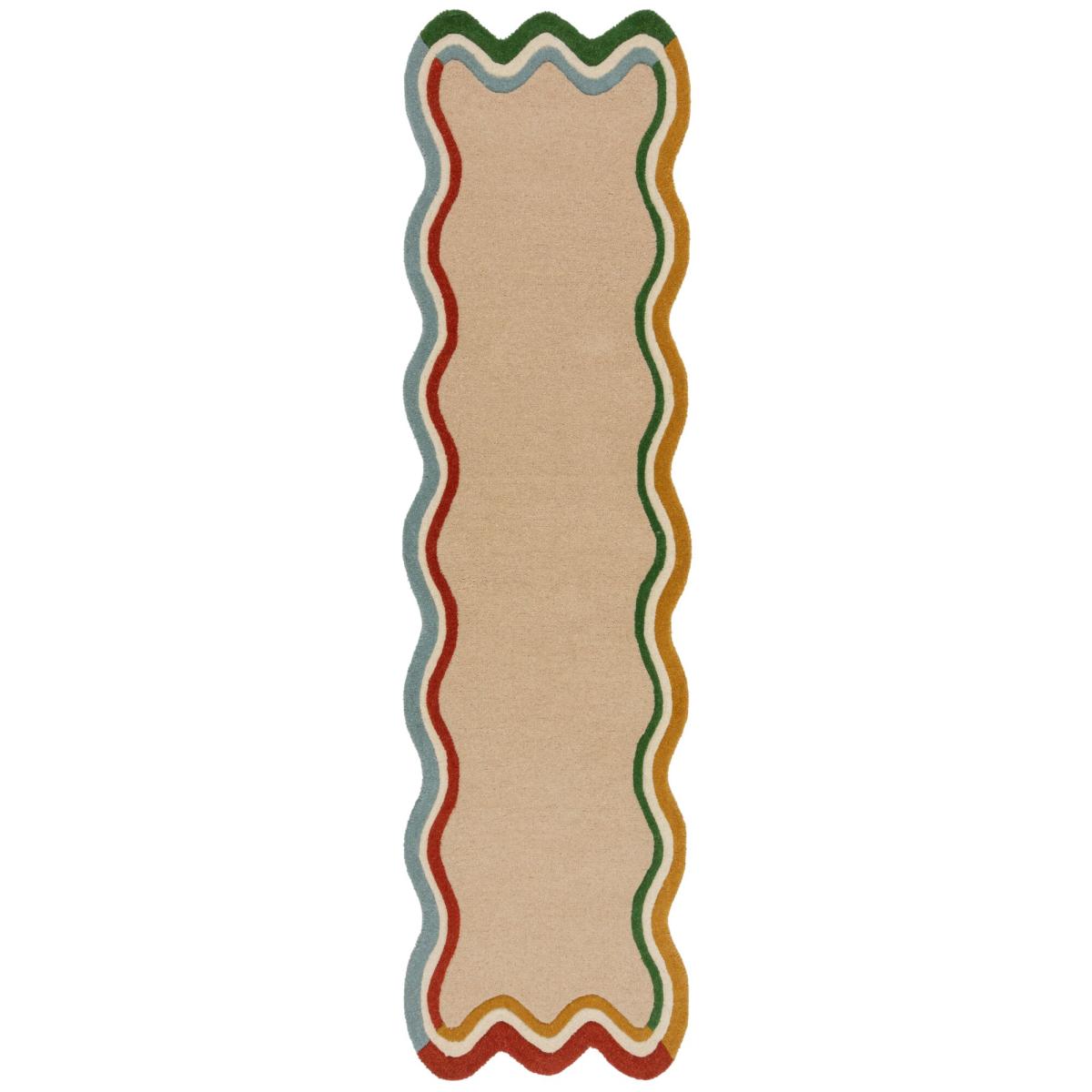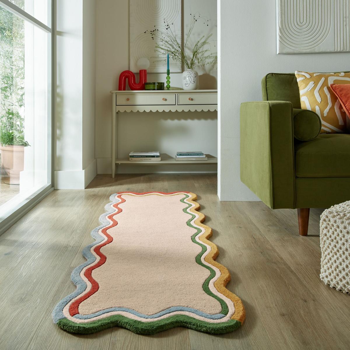 * Made from wool* Scalloped border Classic design meets contrasting colour with the Elements Wave Border Runner. The showstopping design is crafted from 100% wool for a warm underfoot feeling, and hand carved scalloped edges for a premium finish. This wave border runner will add an instant design uplift to any interior from bold brights to neutral hues. Pictured rug size is 60 x 230cm. Care:For regular cleaning, we recommend using a suction-type vacuum to ensure that rotating brushes won't damage the wool pile. In the case of an accidental spillage, blot with a clean and dry cloth. Due to the woollen composition a small amount of fibre loss is normal, but simply trim loose fibres with household scissors. To keep your rug looking fresh and even rotate regularly to balance out wear. To be safe, keep away from fires such as lit candles and don't leave children and babies unsupervised on this rug.