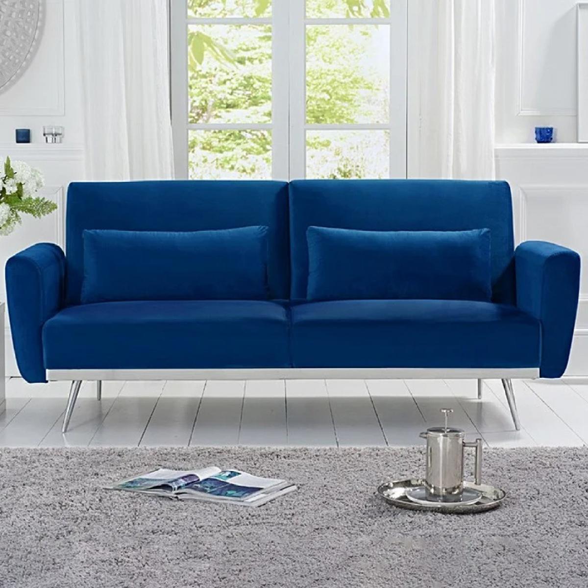 I love the Elena blue velvet sofa bed for its striking colour and luxurious texture, which brings a contemporary yet timeless feel to any interior. It's a versatile piece that works particularly well in modern, eclectic, or even transitional spaces, adding a pop of colour that can easily be complemented with neutral tones or bold contrasting accessories. Practical styling tips include pairing it with crisp, white or grey cushions to highlight the velvet’s richness, and keeping the surrounding decor minimal to let the sofa be the statement piece. Its sleek design and slim legs also help make smaller rooms feel more spacious, making it a clever choice for urban living or guest rooms where style and function need to align.
