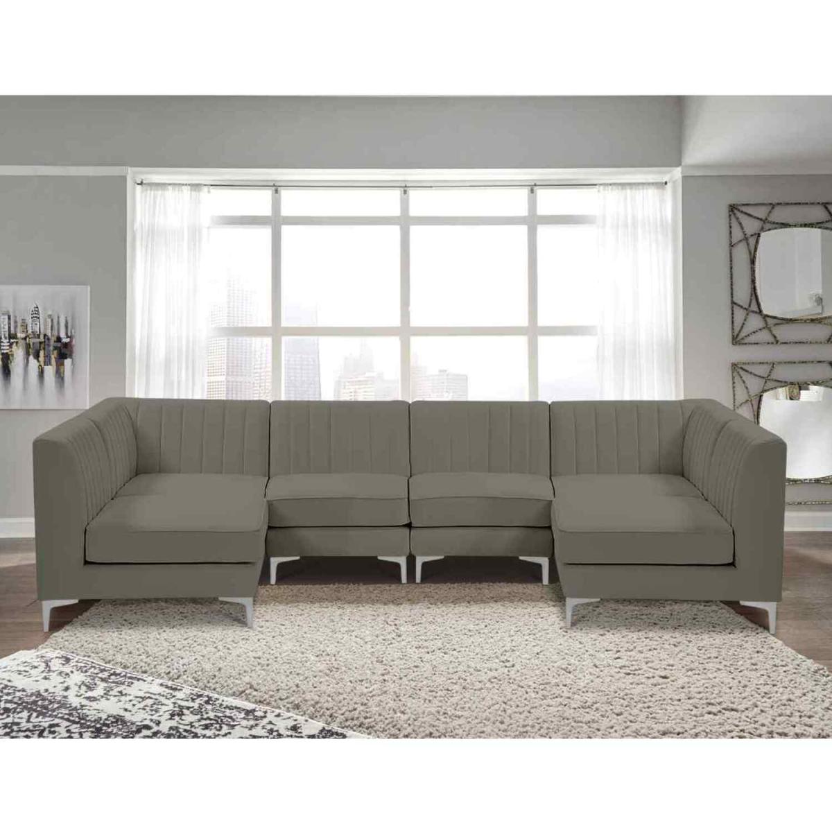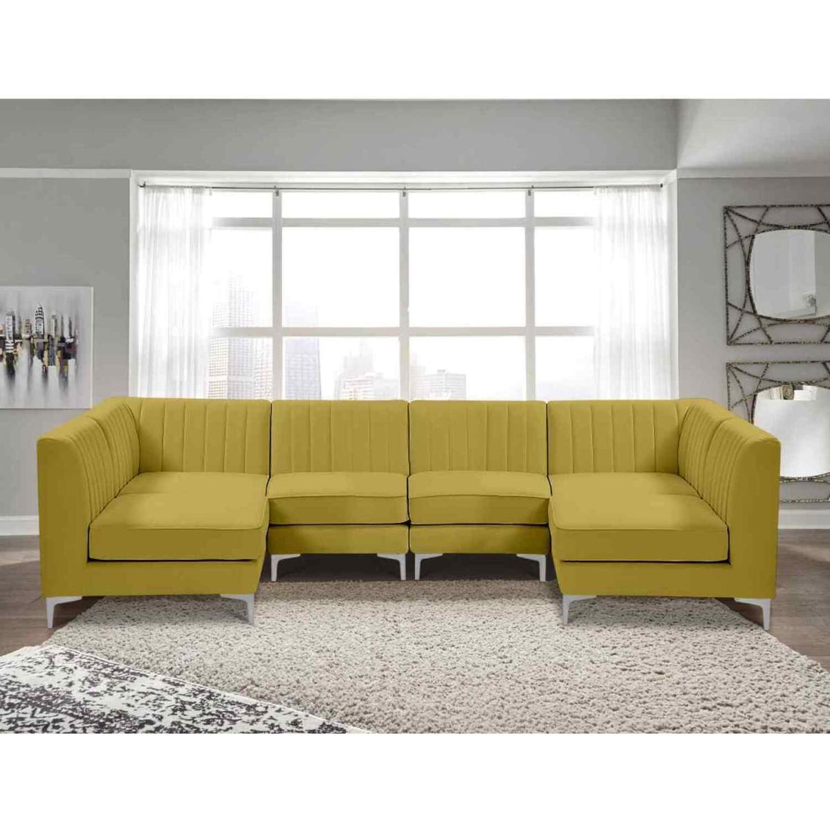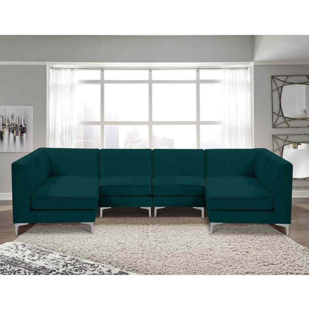 This modular u shape sofa is beautifully handcrafted in the UK using velour velvet fabric, this stunning sofa can be moved around and clicked in as you see fit. A premium sofa to make a premium statement to any living room setting. Elegant and eye-catching, the stunning Modular Sectional is the perfect addition to any space.