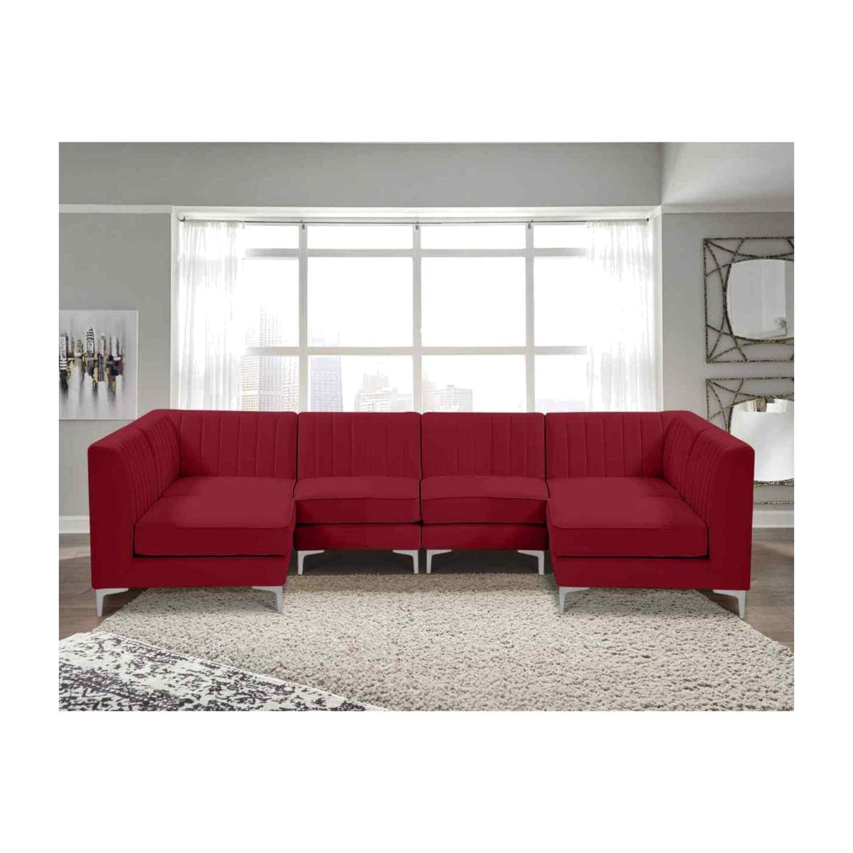 Elena Modular Corner U Shape Sofa in Velour Fabric - Red