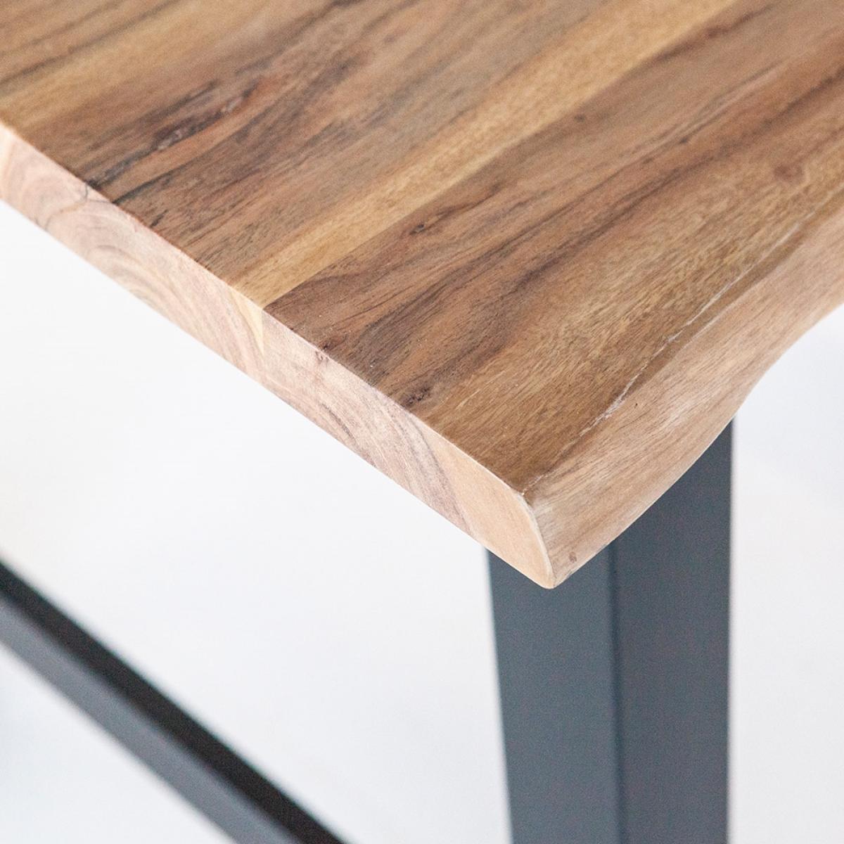 The Eleonora Acacia Bar Tableis the perfect addition to your kitchen or dining room. Imagine the mornings you can spend here with a coffee in hand and a delicious breakfast ready to be eaten! Or after hours, perhaps a cocktail or glass of wine. The solid acacia wood table top sits atop sturdy iron legs with a black finish to give an industrial vibe. Why not add a few quirky bar stools to make a real statement?!.
