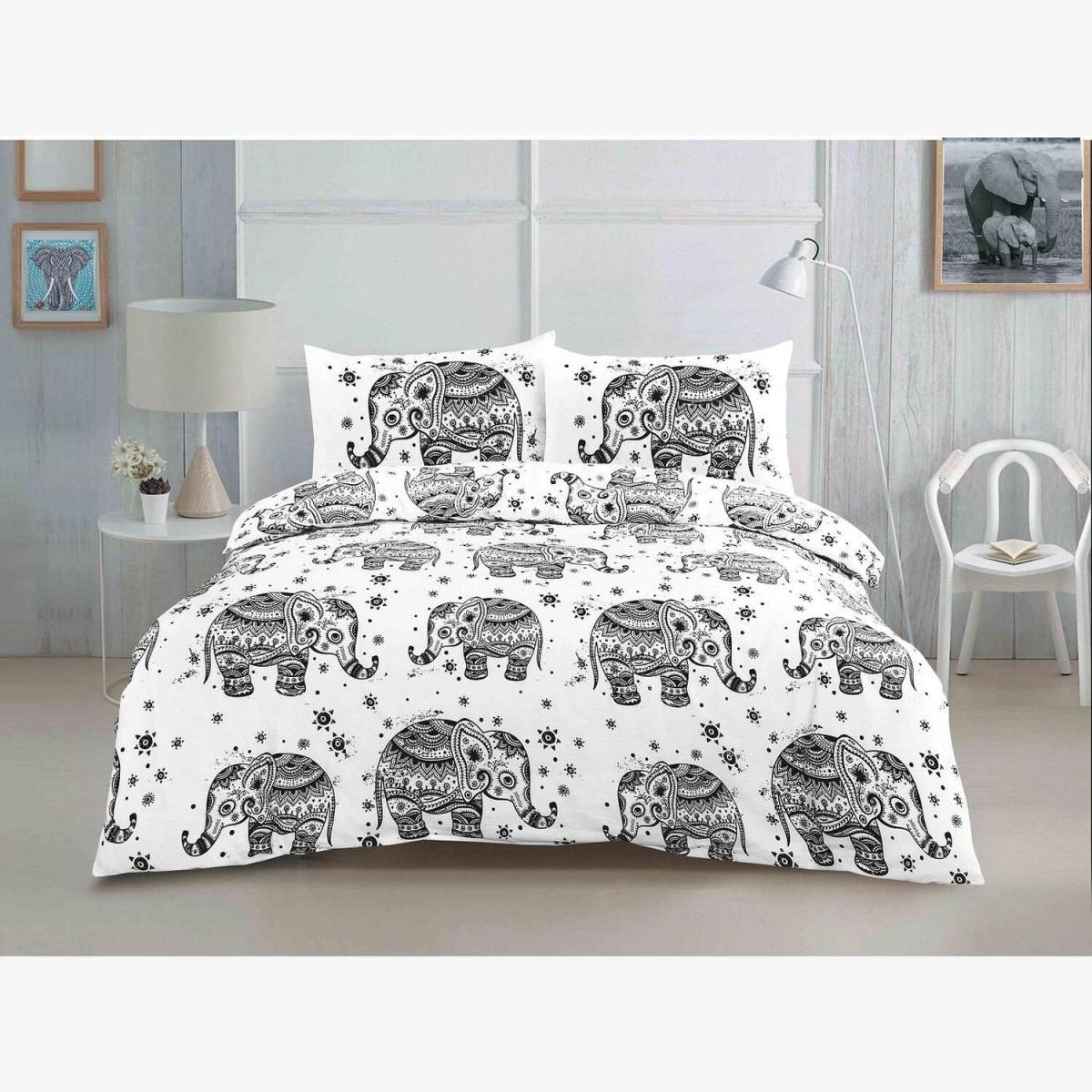 Elephant Duvet Cover Set BlackWhite Bedding - Black / Superking