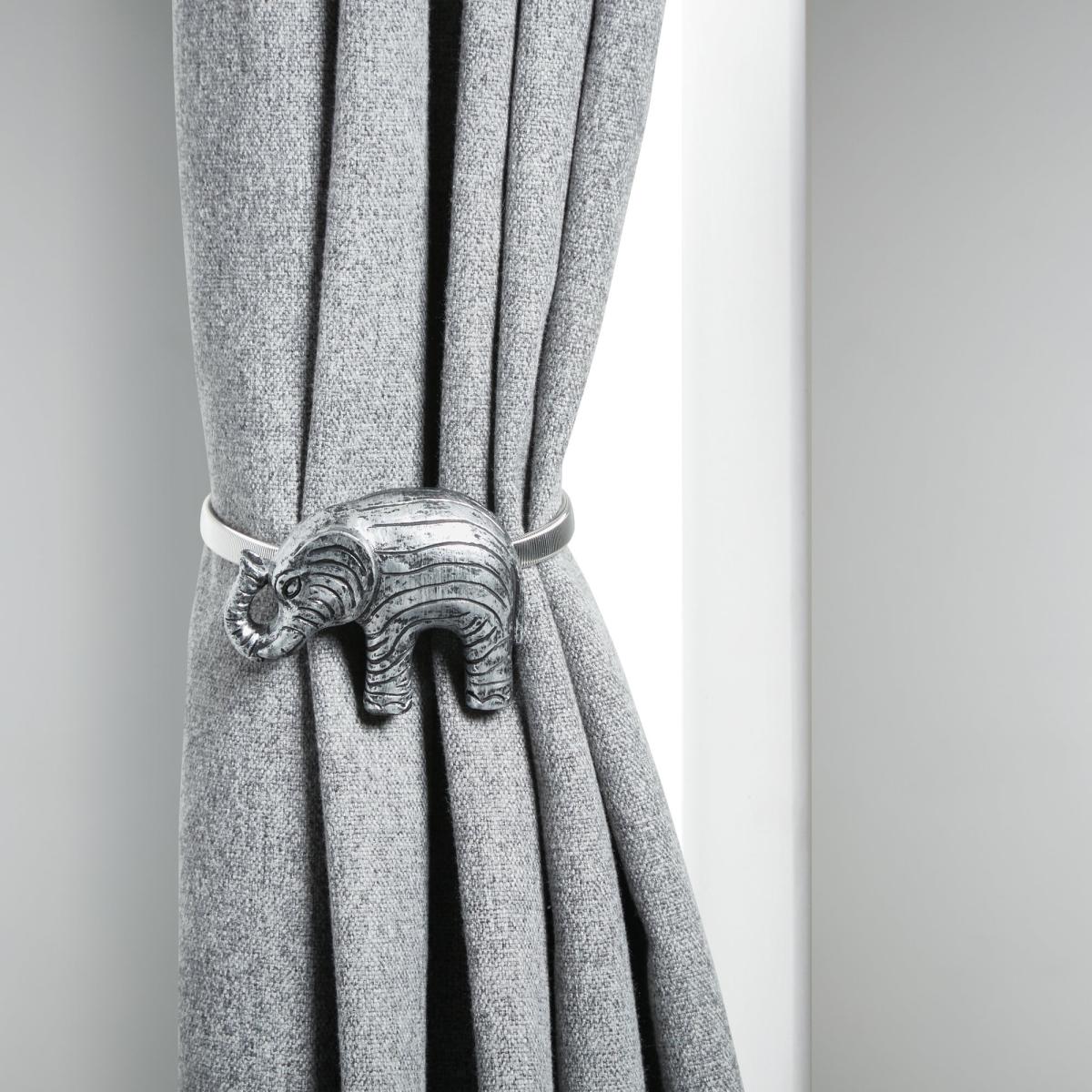 An adorable elephant design in a satin steel colourway gives this tieback a novel style, perfect for adding finishing touch to your window. A magnetic clasp helps keep the tieback around the curtain for secure storage of the panel.