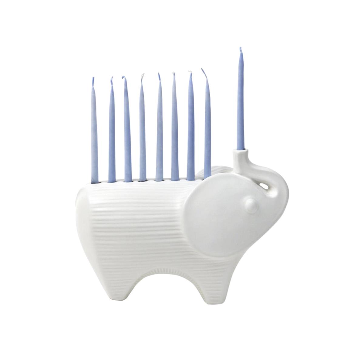 Create an intriguing display in your home with this Elephant menorah from Jonathan Adler. Crafted from high-fired stoneware and finished in a soft satin white glaze, this menorah is presented in a beautiful box and it makes a great gift idea.