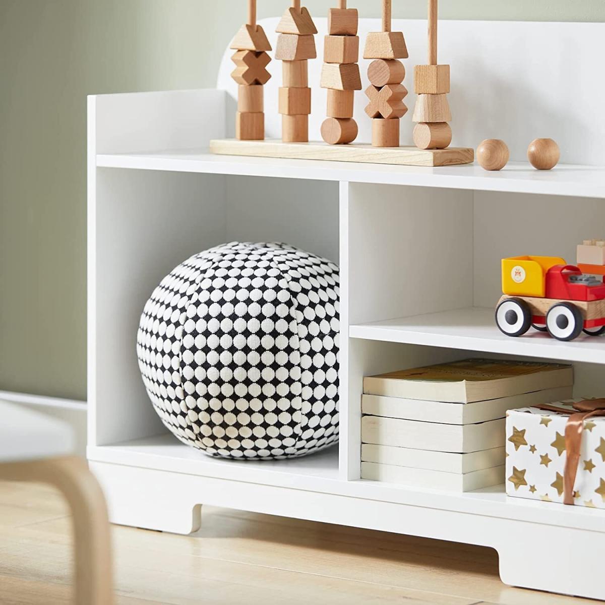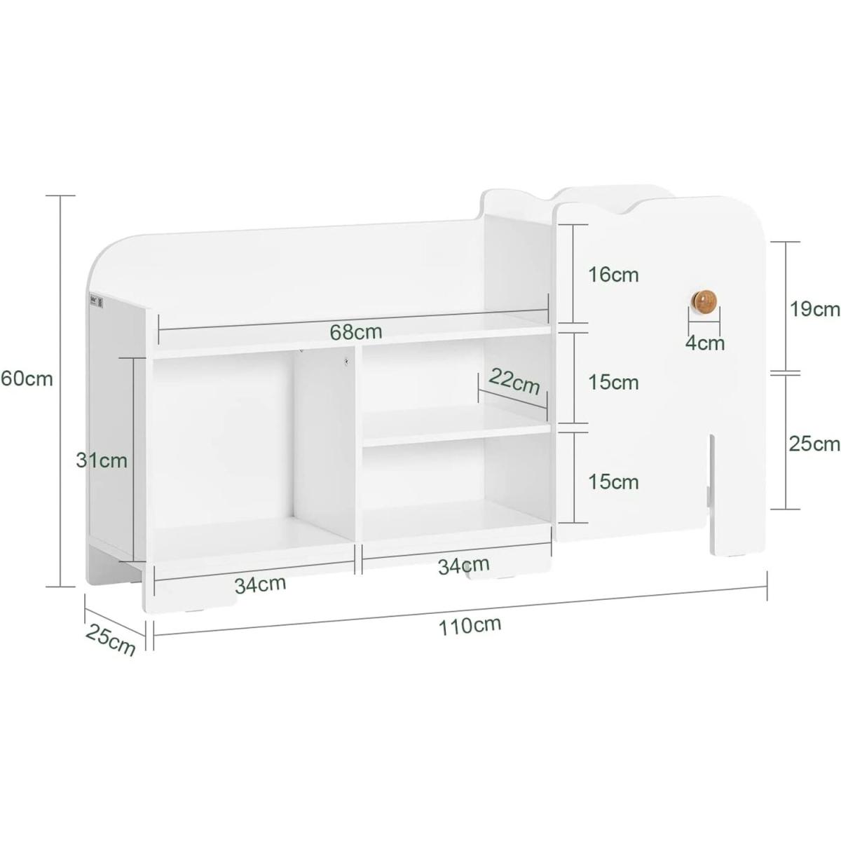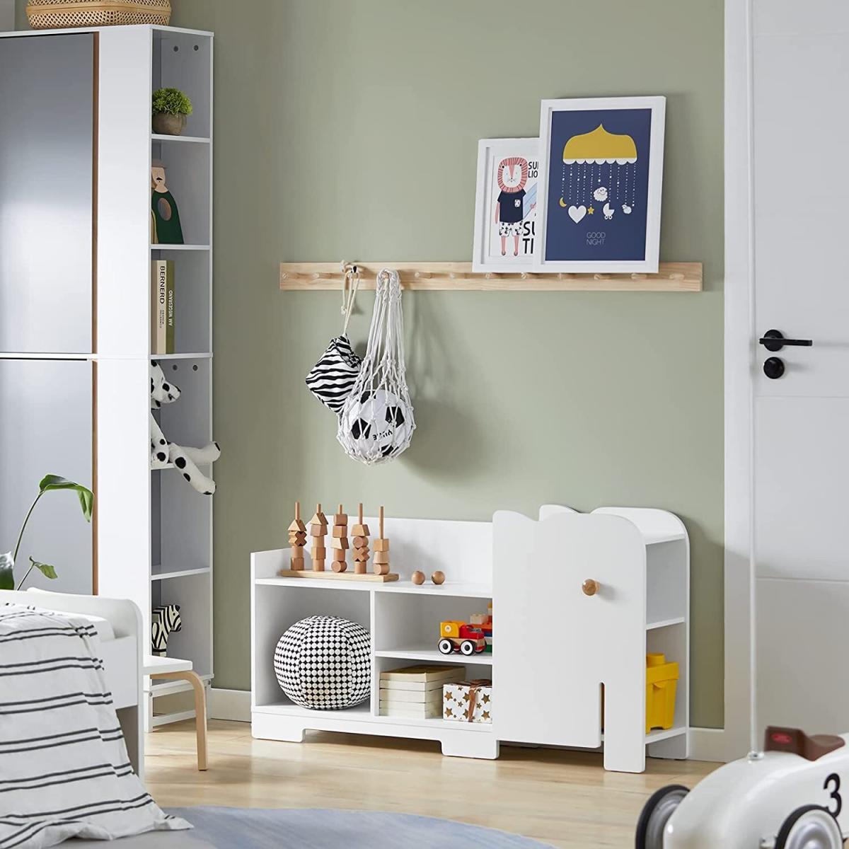 Modern design children storage shelf in white will blend perfectly with any decor. An ideal addition to any playroom and childrens room. Elephant shape design, attractive and contemporary way to create a good look for a kid's room. It has 7 open storage compartments 4 compartments in the body and 3 compartments in the head, providing ample storage space for the books, toys, etc. The hook, elephants eye, ideal for hanging small bags or other items. Adorable and useful children storage shelf in the shape of an elephant! Let it accompany your kid growing up. Suitable for children ages 3 and up, it can help your kids develop a good habit of organizing. Sturdy wood with environmental protection paint and cute look, an ideal choice for daycare, classroom and children's room.