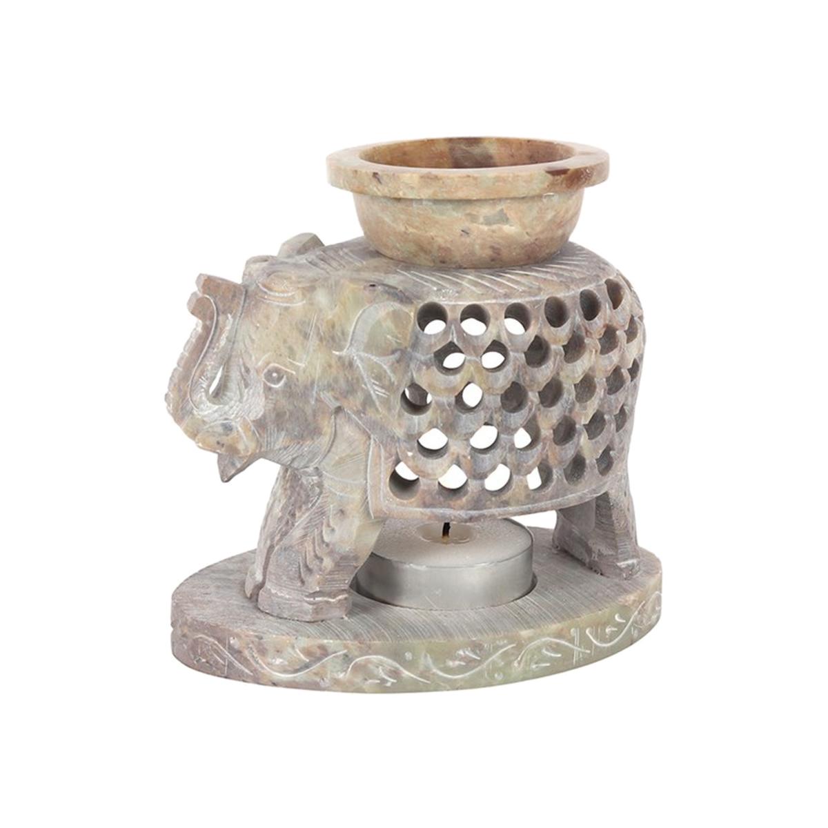 This soapstone oil burner and wax warmer is shaped like an elephant with an upturned trunk. Gently fragrance the home with oils or wax by placing a lit tealight underneath. Use with caution and do not leave unattended.