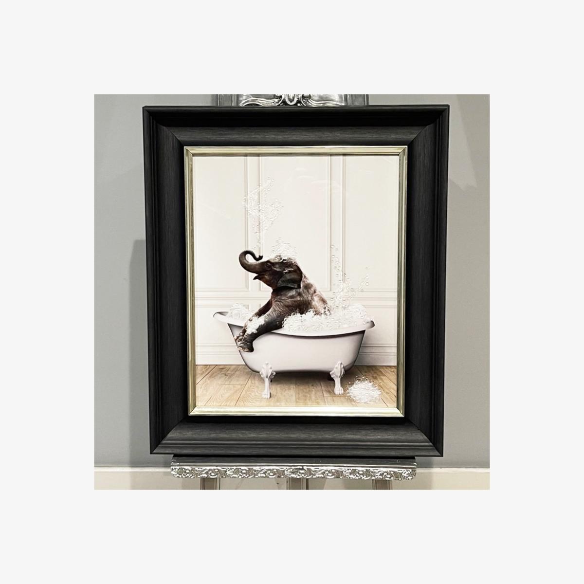 I love how the elephant tub wall art injects a playful yet refined touch into a space. It works particularly well in eclectic or contemporary interiors where visual intrigue is key. The bold black frame offers a striking contrast that can anchor a gallery wall or stand out as a statement piece on its own. For styling tips, consider pairing it with neutral backgrounds to let the artwork take centre stage, or position it alongside other nature-inspired pieces for a cohesive look. Practicality-wise, since it's a sizeable piece, ensure it’s hung at eye level in living areas or hallways to maximise visual impact-adding a touch of personality without overwhelming your decor.