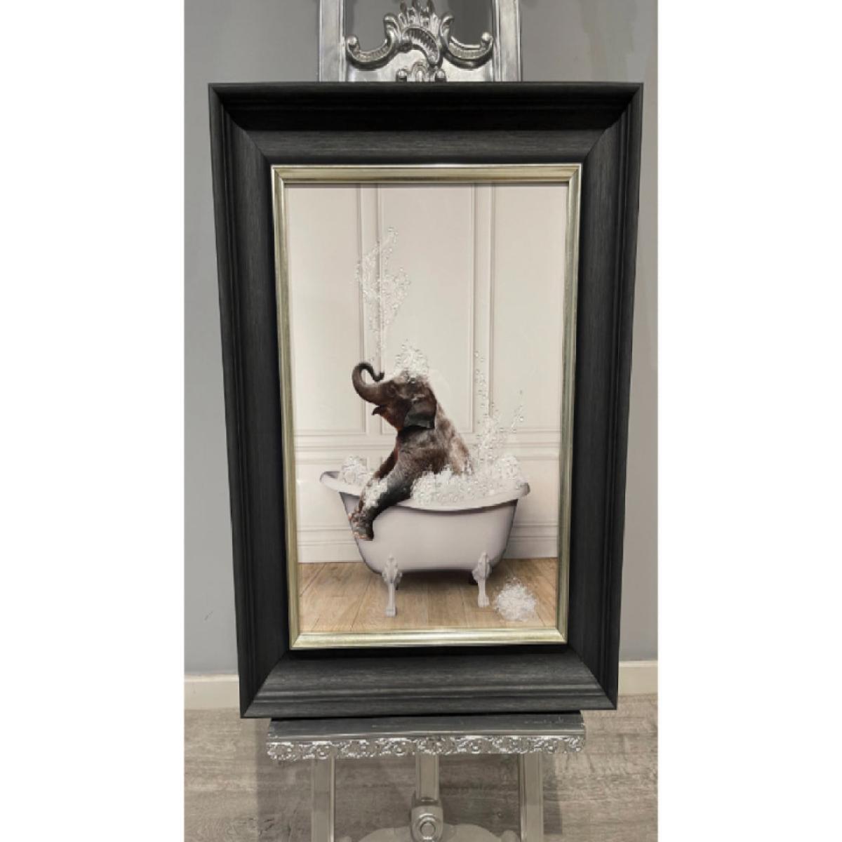 Charming bathing elephant art in black frame. Splish, splash, we're taking a bath with the Elephant Tub wall art - perfectly placed in your bathroom.   Charming bathing elephant art in black frame. Splish, splash, we're taking a bath with the Elephant Tub wall art - perfectly placed in your bathroom.