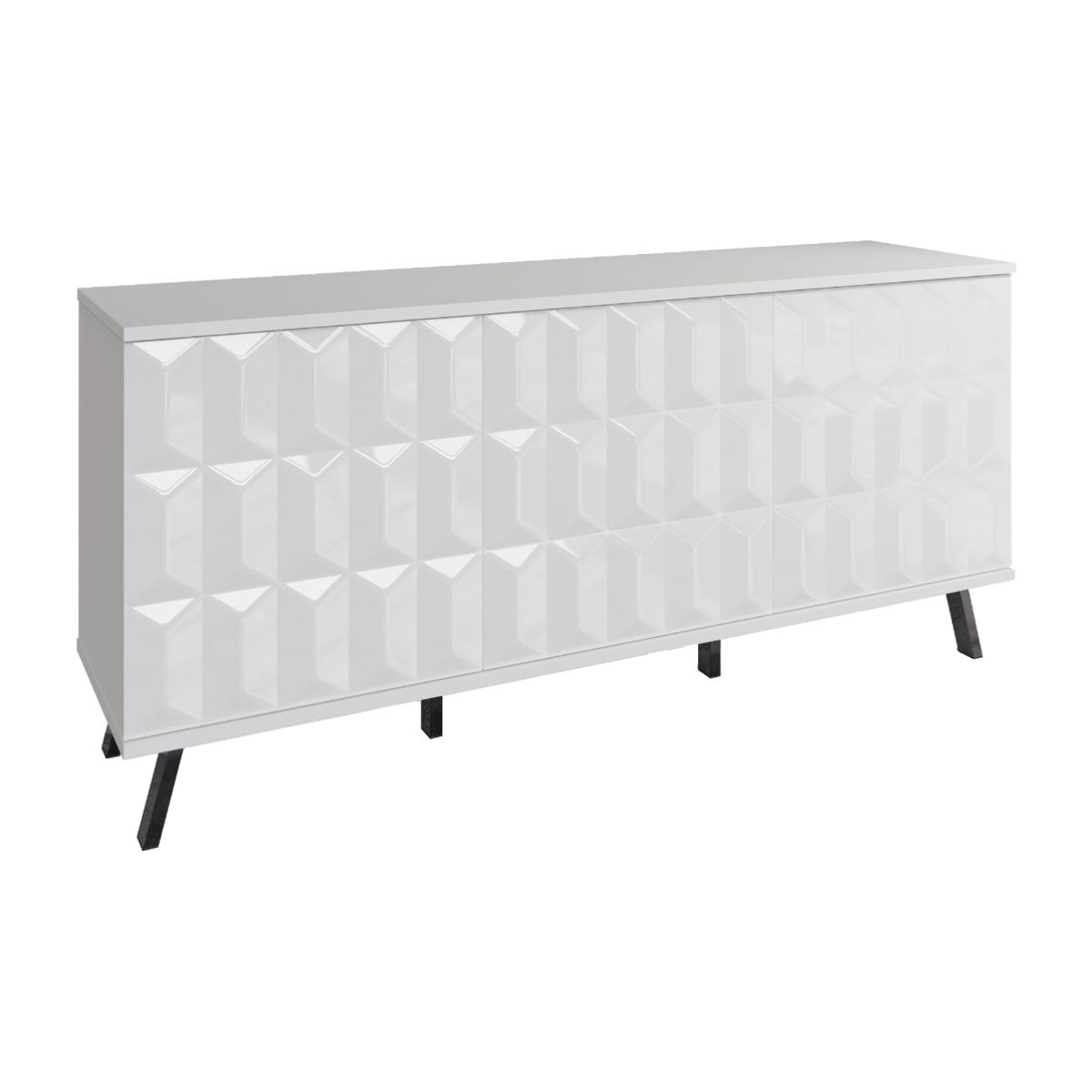 I love this sleek white gloss sideboard for its contemporary elegance and the subtle geometric pattern that adds visual interest without overwhelming a space. It works particularly well in minimalist or modern interiors, where clean lines and high-shine finishes help create a sense of openness. Practical styling tips include using it as a statement piece in a living room or hallway, topped with a mix of decorative objects, indoor plants, or stylish table lamps. For visual balance, consider pairing it with muted or contrasting accessories to keep the focus on its textured surface. Its versatile design also means it transitions seamlessly between different colour schemes and decorating styles, making it a functional yet stylish addition to many interiors.