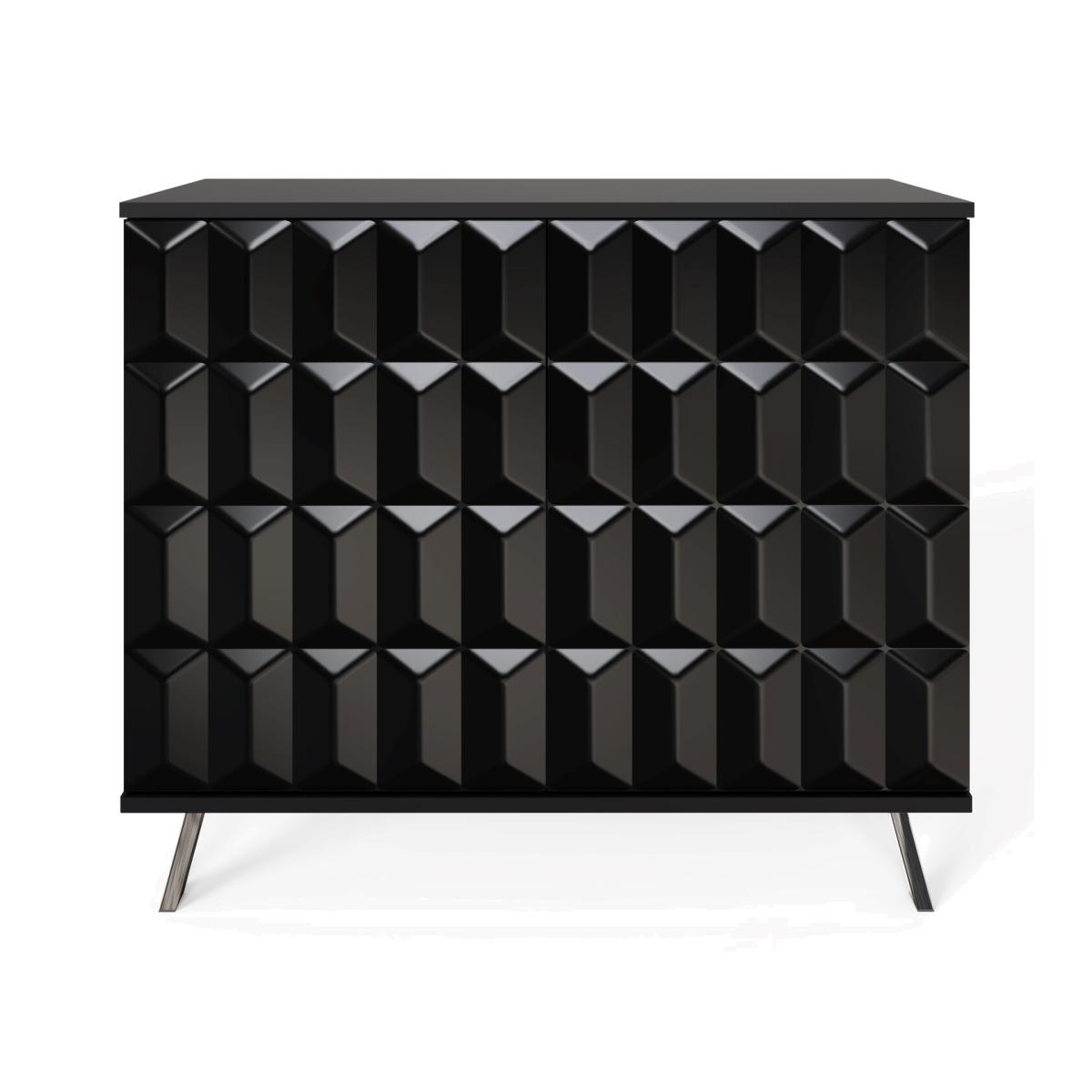 Small, still perfectly formed, beautiful and intelligent, style meets SMART technology in the Elevate small sideboard. This stylish compact sideboard seamlessly integrates contemporary design with SMART technology features, discreet wireless phone charging and Frank Olsen app or SMART speaker controlled full colour spectrum LED lighting. Demonstrating that luxury intelligent interior design does not have to cost the earth. The Elevate small sideboard with high-gloss painted doors, boasting a striking geometric design and a satin finish main body, brings a sleek contemporary style. Perfect for stylish storage in smaller spaces. The sideboard rests on high-shine smoke chrome legs to complete the look and give added height.