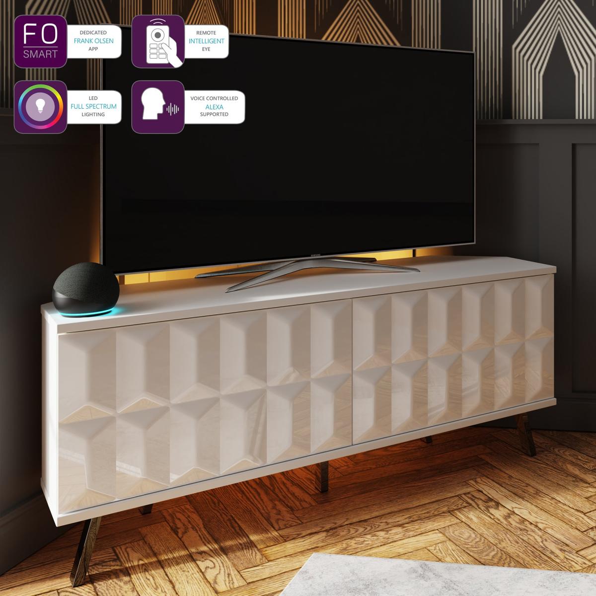 The Elevate SMART LED Corner TV Unit is everything you need to take your movie nights and gaming sessions to the next level. The built-in intelligent eye lets you control all your AV equipment without even opening the doors. The full-colour spectrum LED mood backlighting adds some serious ambience to your space, and you can customize it with the free Frank Olsen app or voice control via your smart speaker. Get ready to transform your living room into a cinema-worthy experience!.