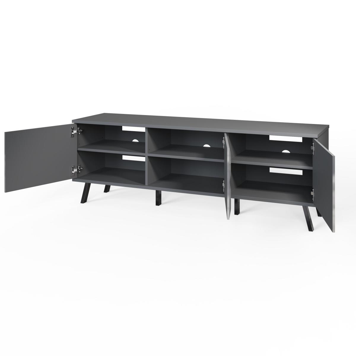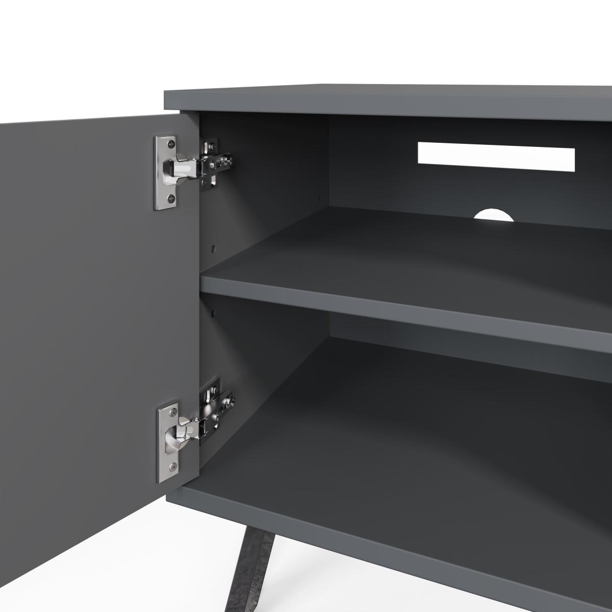 I’m a fan of this grey TV cabinet for its clean lines, geometric front panels and built-in LED strip that adds subtle backlight without extra fuss. Its matt finish and slender legs sit neatly in contemporary, Scandi or even pared-back industrial schemes, and the hidden cable routing keeps tech clutter out of sight. For styling, balance the LED glow with a couple of low vases or sculptures in muted tones, and tuck a trailing plant at one end to soften the edges. Use the cupboards to stow consoles, remotes and media out of view, then top the unit with a slim soundbar or a few well-chosen coffee table books to complete the look.