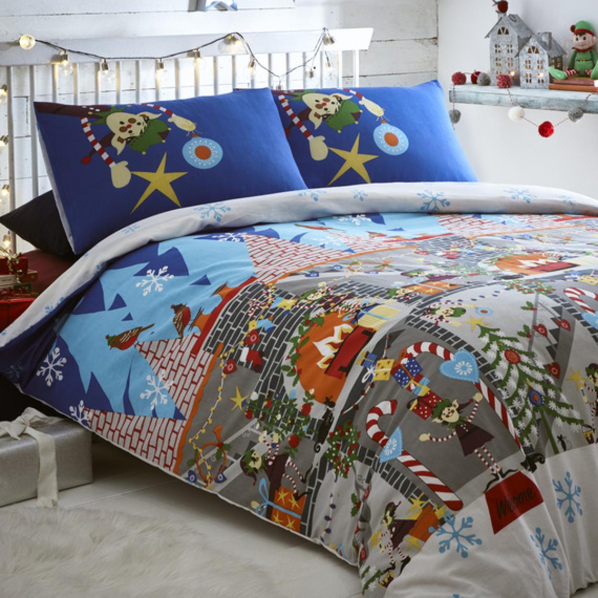 I love this elf workshop duvet set for adding a fun, festive touch to a child's room, especially during the holiday season. Its vibrant blue colour and playful design make it a great standout piece that works well in contemporary or Scandinavian-inspired interiors, where bold colours and whimsical patterns are appreciated. To style it effectively, consider pairing it with simple, solid-coloured accessories to keep the look balanced, or layer with cosy textured cushions and throws for a more inviting, layered feel. This bedding set is perfect for creating a lively, cheerful aesthetic that kids will love, while still fitting seamlessly into a modern or playful bedroom scheme.