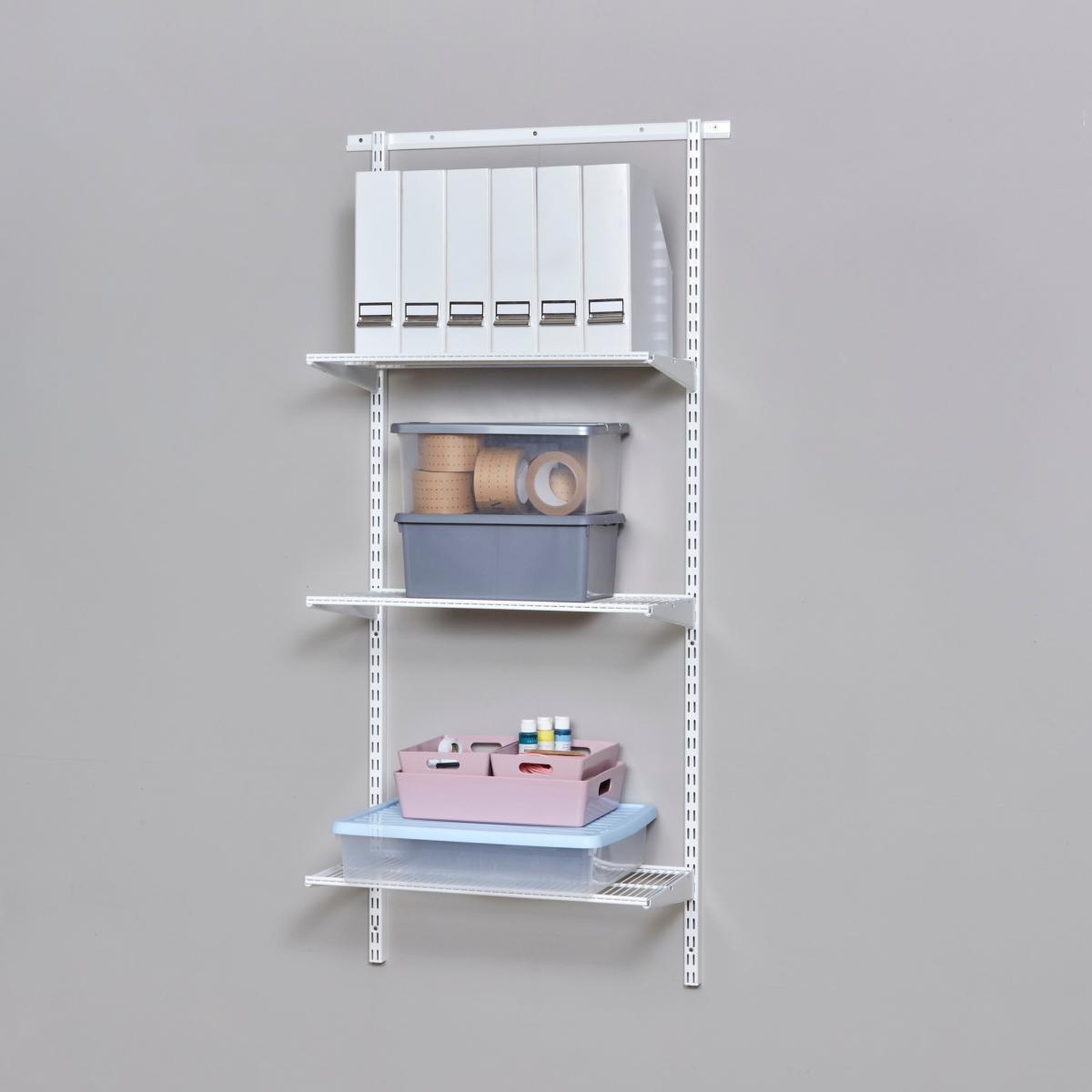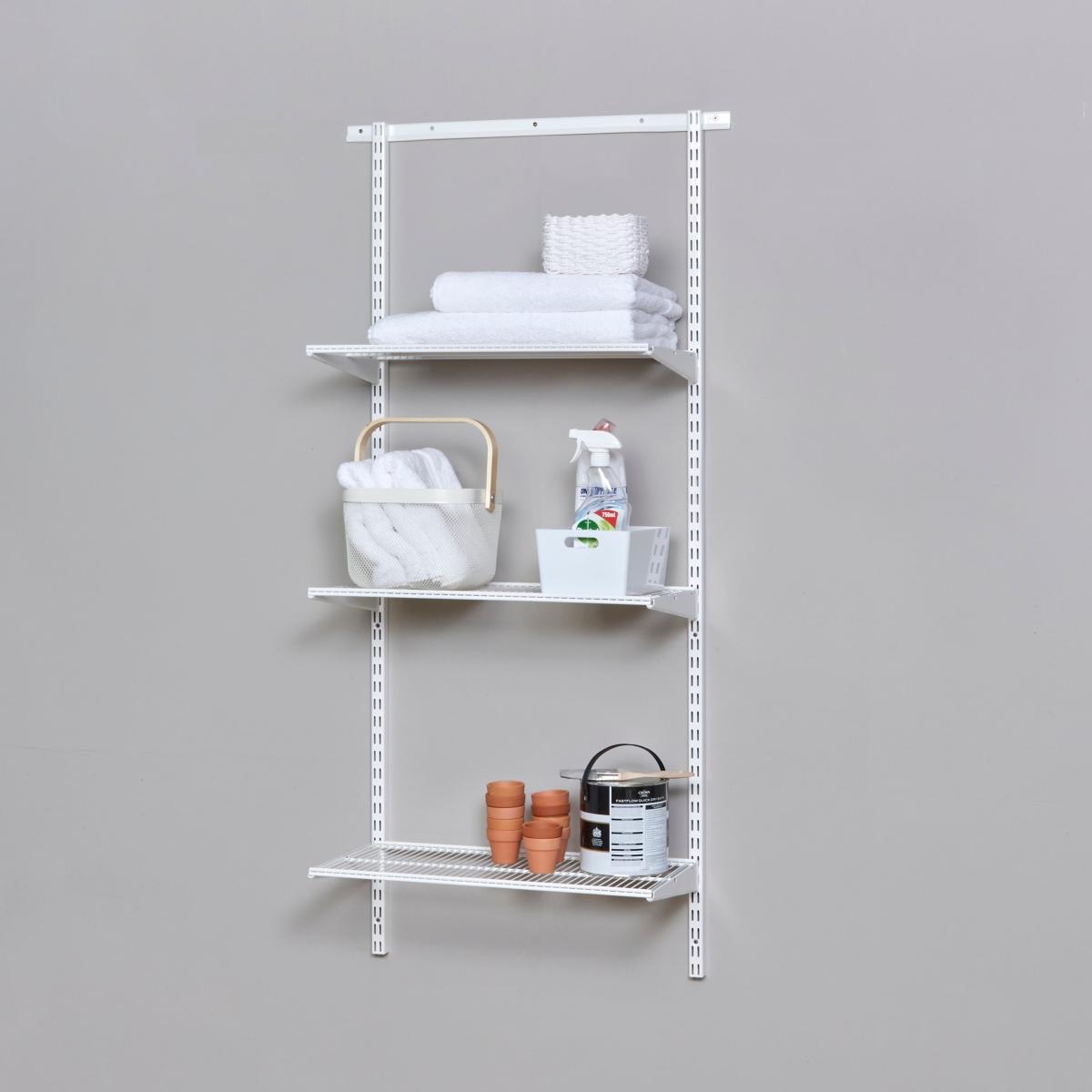 Short on time and storage space? Look no further. Easy to install, minimalistic look, customisable modular storage, and no more clutter - what more could you ask for! This pre-packed starter kit offers a one-click solution to quickly solve your storage needs. Designed as a modular shelving unit, you can use this alone, pop a couple units side by side, futher add and customise them, or use it as the foundation to build your bespoke Elfa solution for your space. Including all the components you need, all that's left for you to do is pop a couple screws in the wall and start clearing your clutter!.