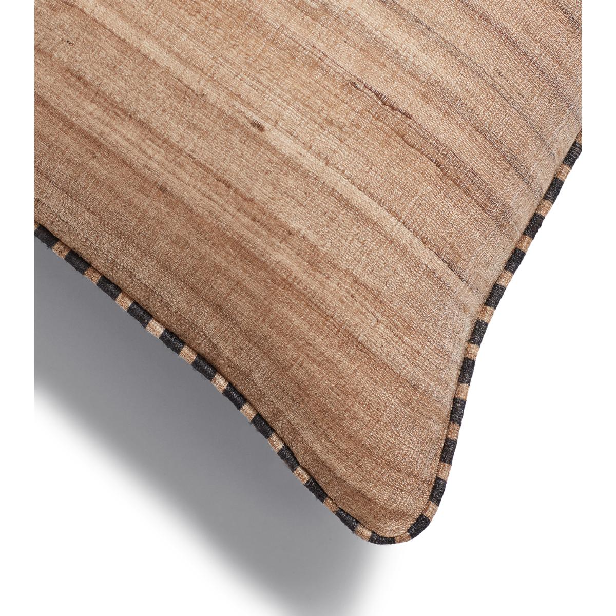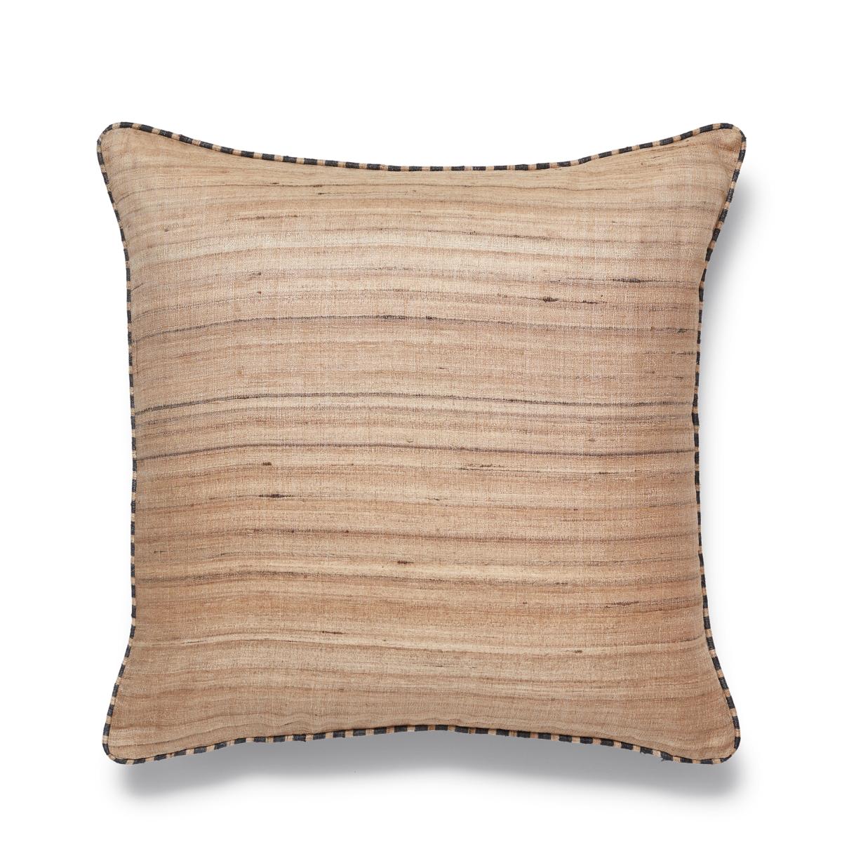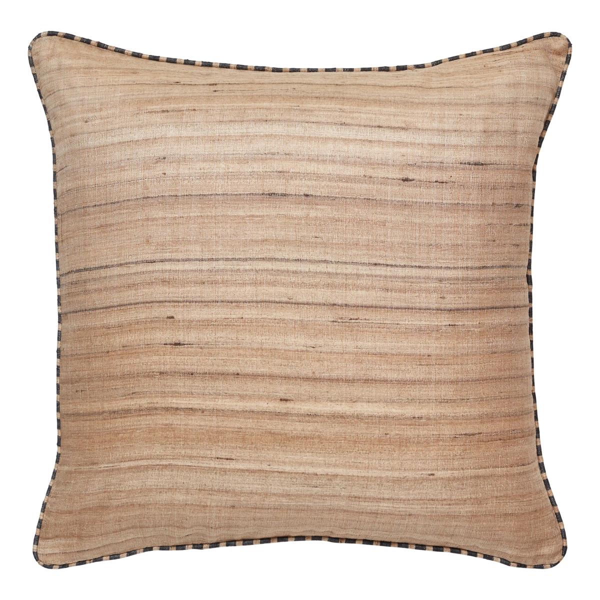 Originally designed to adorn one of our lampshades, we have expanded our Elgin range to include matching cushion covers. The pattern is screen-printed onto 100% natural tussar silk for a marbled effect. This is complemented by a printed, striped silk piping that runs around its edge, picking up the Indigo colour that runs through the fabric.