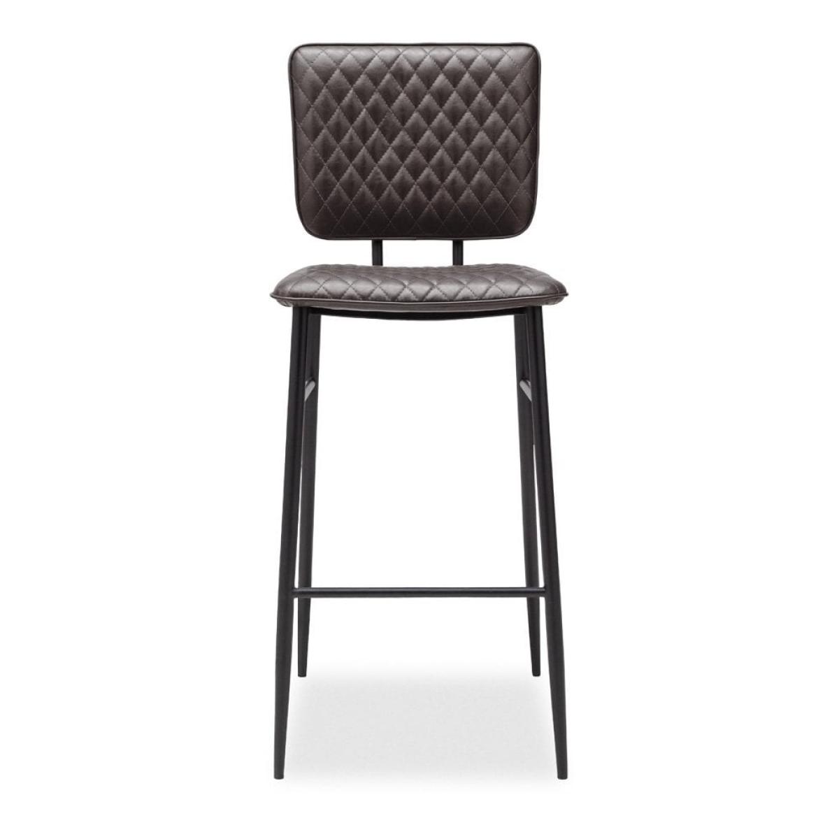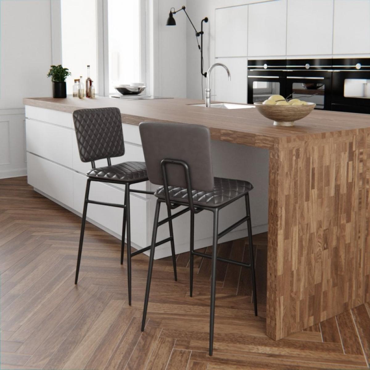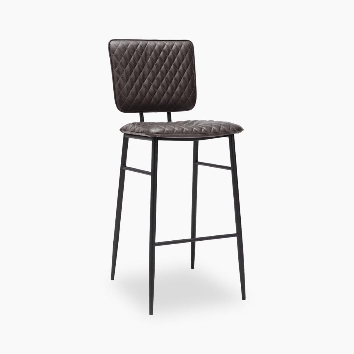 This is the Elgin - a bold, sophisticated metal bar stool that will add an industrial charm to your kitchen. Showcasing a quilted dark grey faux leather upholstery and a sleek metal frame that emanates a retro vibe. Complete the look with a reclaimed wood dining table. View The Elgin Range
