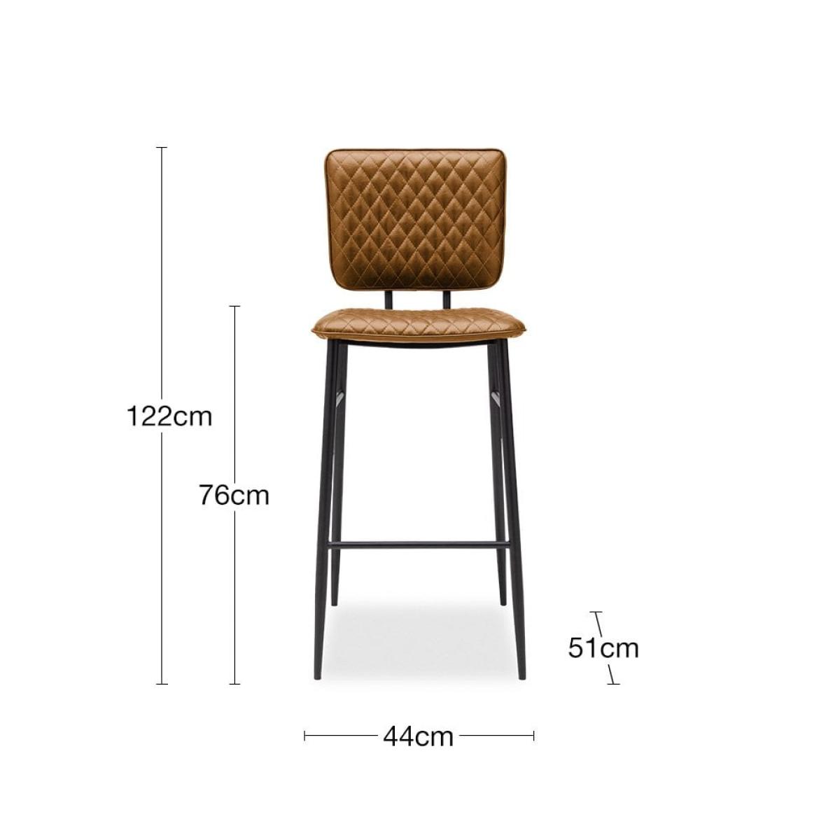 This is the Elgin - a bold, sophisticated metal bar stool that will add an industrial charm to your kitchen. Showcasing a quilted tan faux leather upholstery and a sleek metal frame that emanates a retro vibe. Complete the look with a reclaimed wood dining table. View The Elgin Range