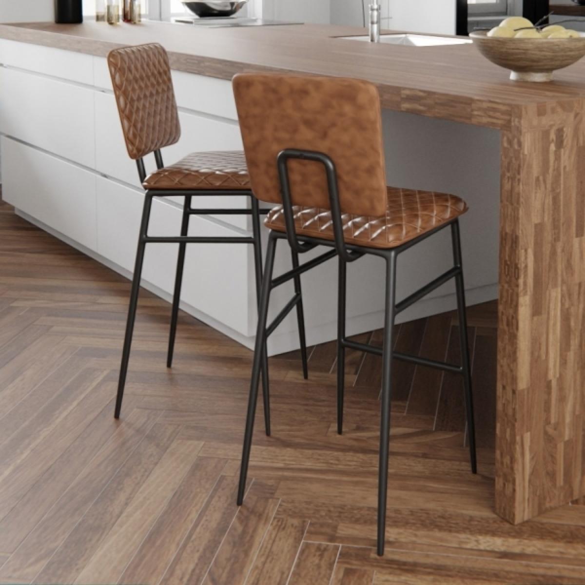 I’m a fan of the Elgin stool for its neat black metal frame and quilted tan seat - it adds a warm, lived-in feel without taking up visual space. The neutral leather-effect upholstery works equally well in industrial, contemporary or Scandi-inspired kitchens and breakfast bars, while the standard counter-height design fits most surfaces. For styling, pair a row of these stools with a reclaimed wood bar or marble island and simple metal pendants above. Drape a small sheepskin across the back for extra comfort and texture, and keep the frame sparkling with a quick wipe-down in soapy water. Rotate their positions now and then to ensure even wear on the upholstery.