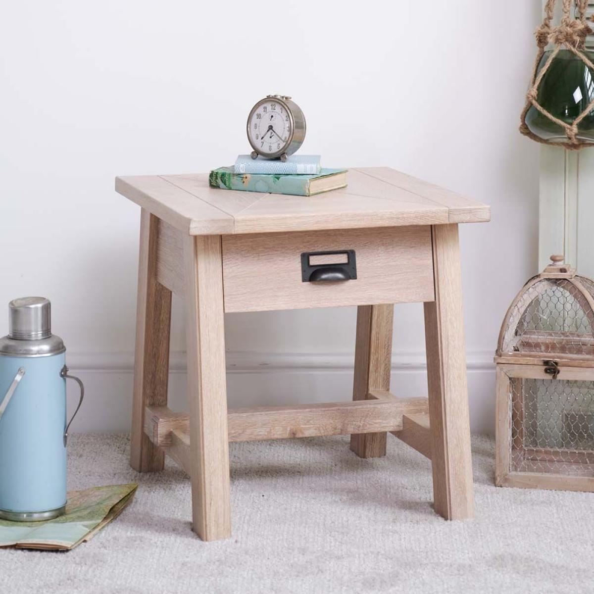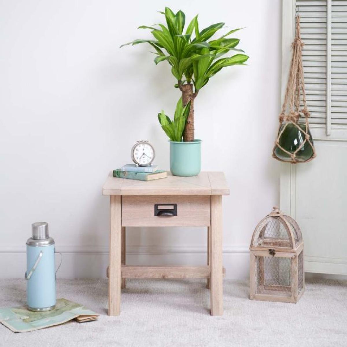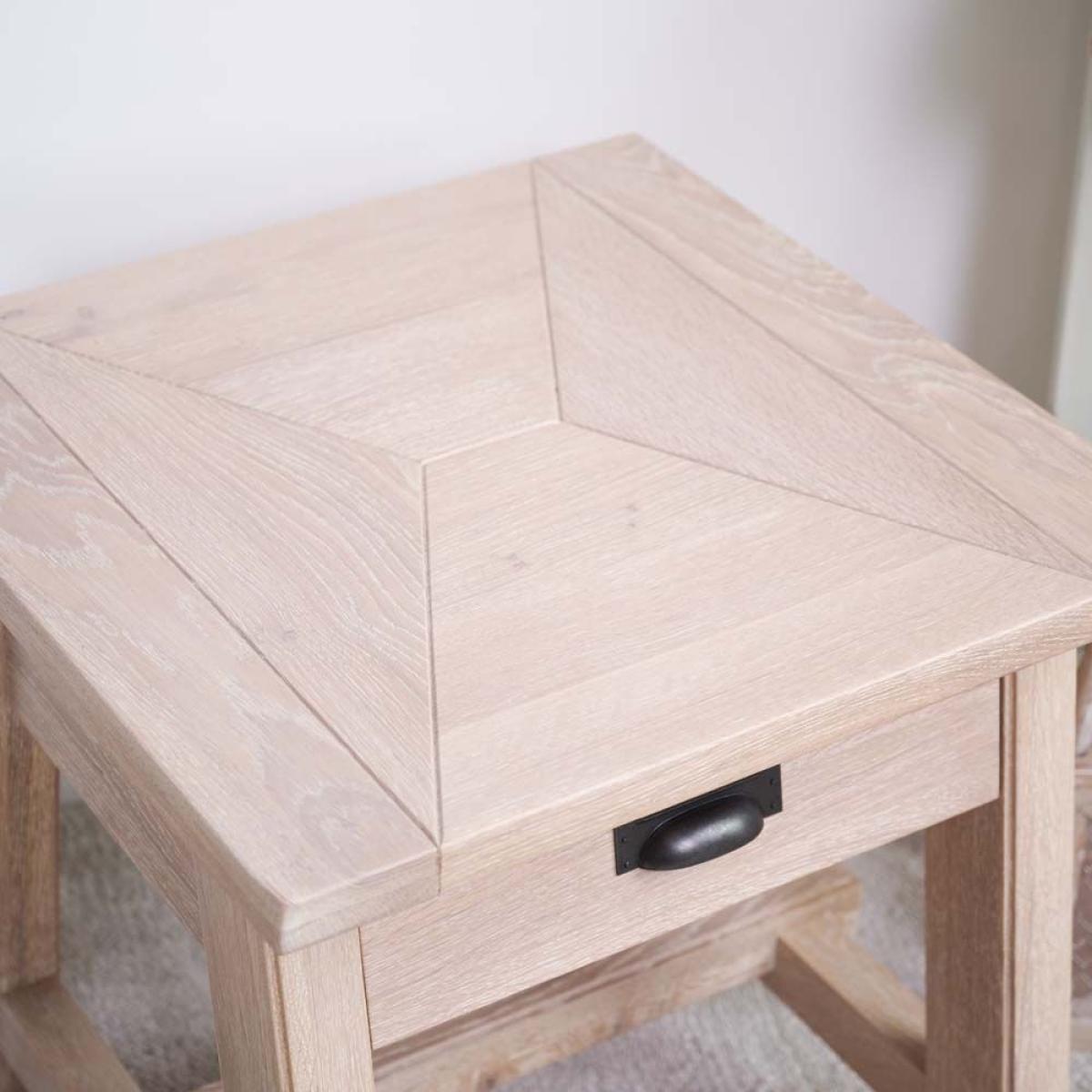 The Elgin side table is a great addition to your sitting room. Perfect at the end of a sofa or beside a chair. The side table features a single drawer with aged metal cup style handle and a shelf below for books etc. The side table is a beautiful construction with exquisite joins and the gorgeous oak veneer finish that is central to the beauty of this range. Brushed oak veneer finish. One drawer and one shelf. Dimensions W55cm x D55cm x H55cm Simple self assembly