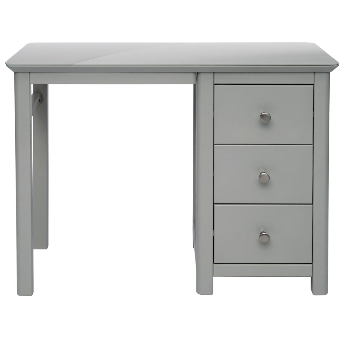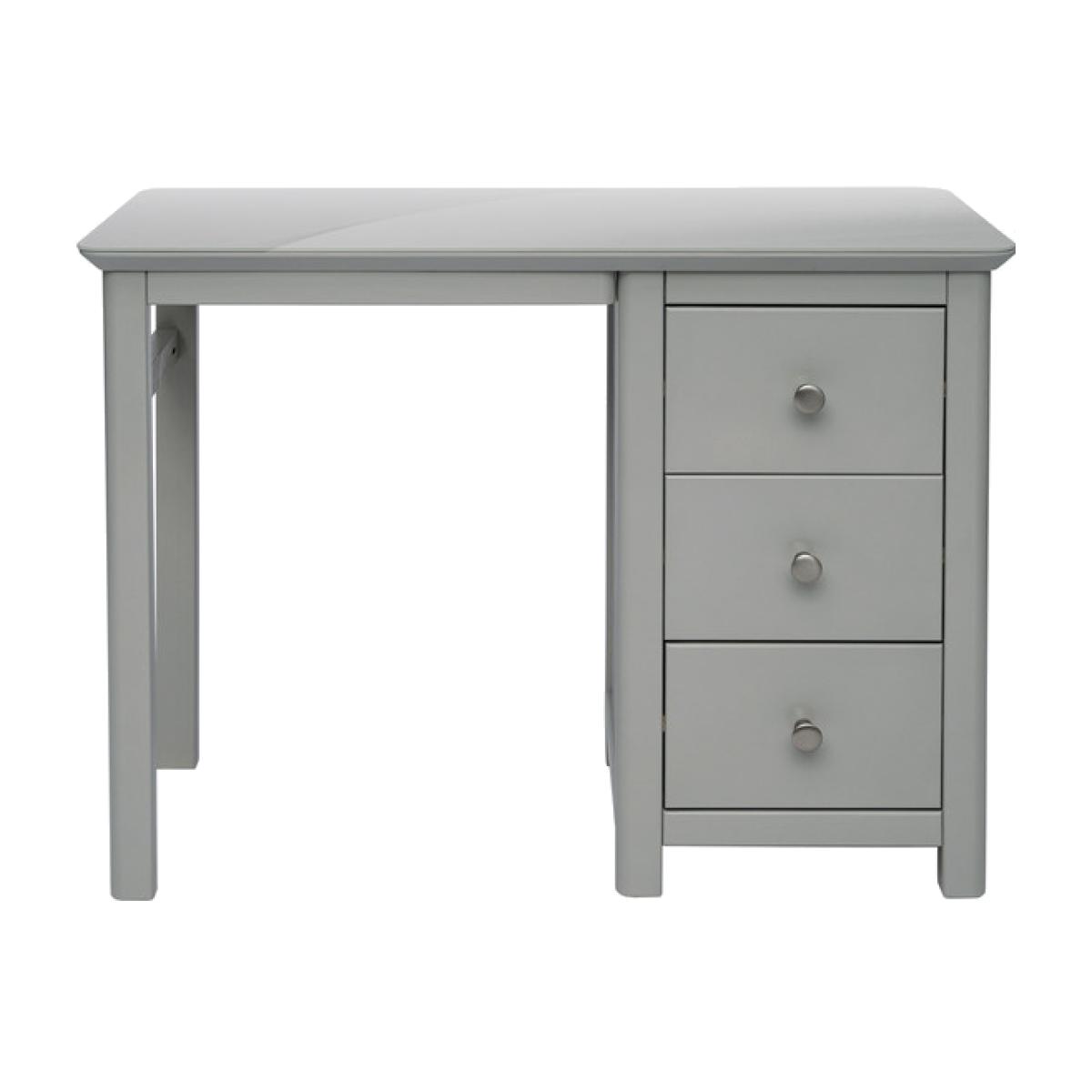 A practical dressing table finished in soft grey paint with a bonded toughened glass top which is hardwearing and very easy to clean.
