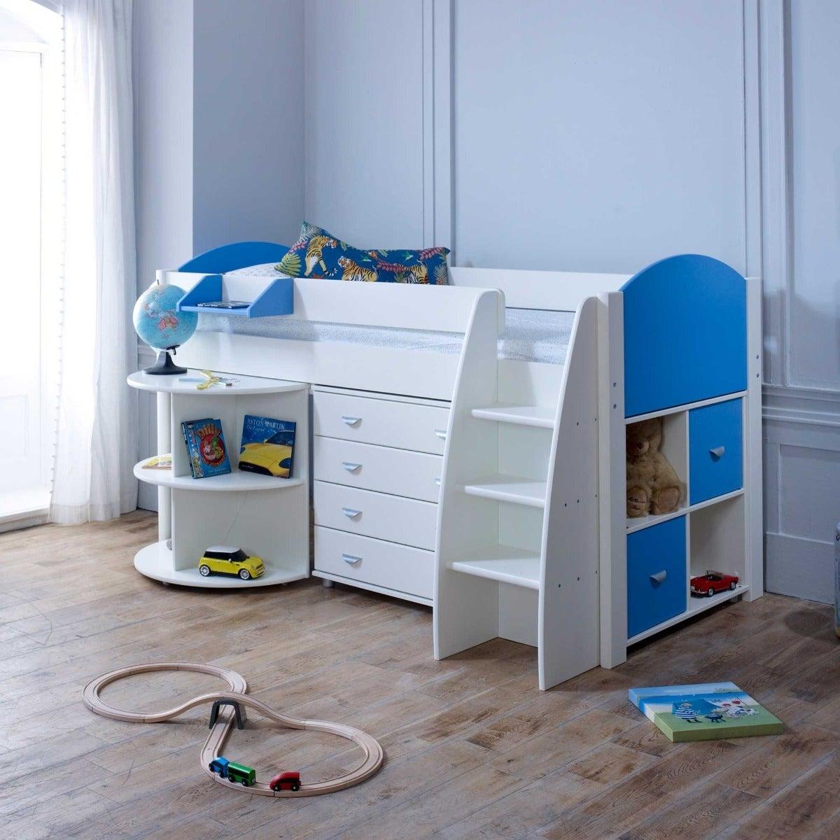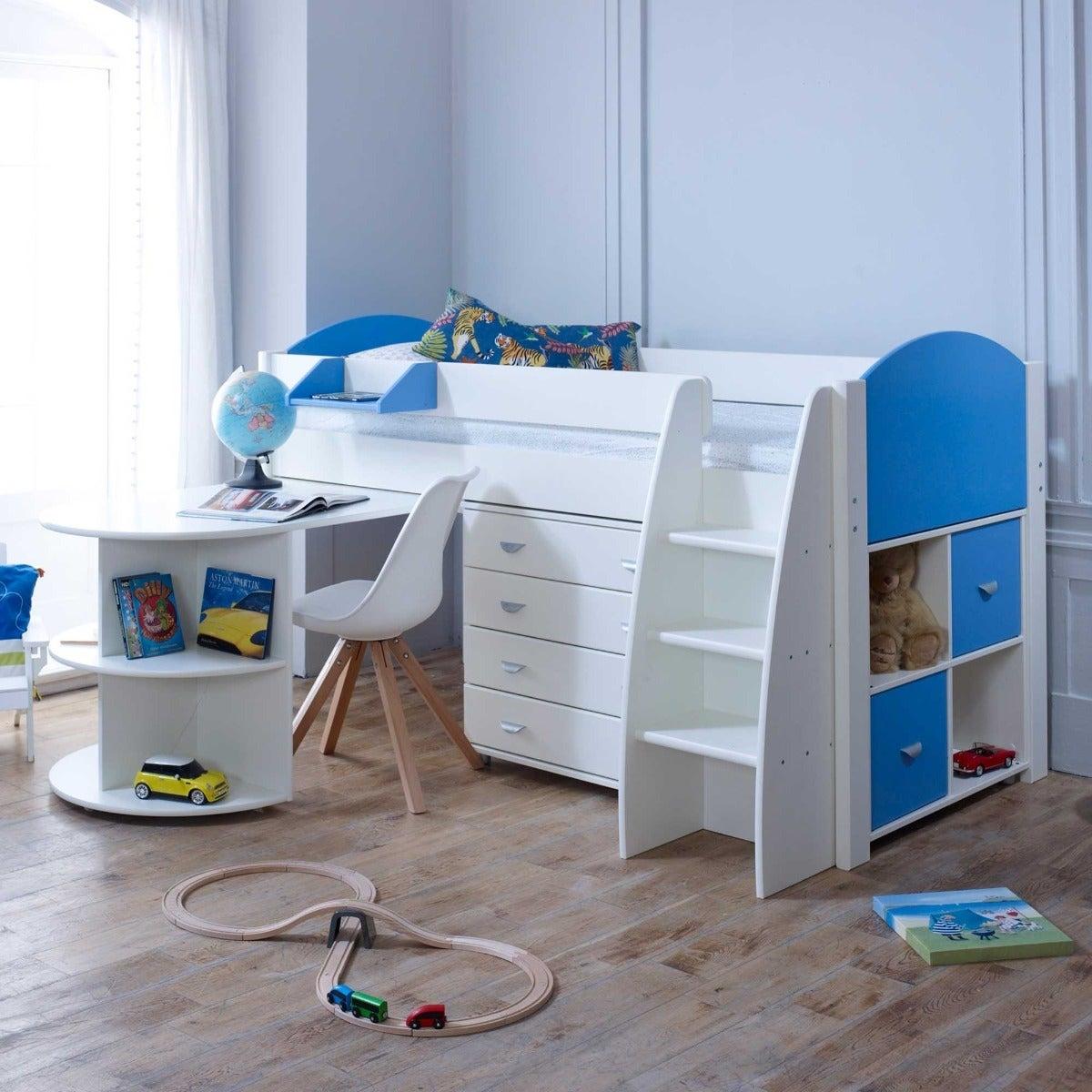 Eli E Children's Midsleeper Bed with pull out Desk, Blue Wood | Barker & Stonehouse