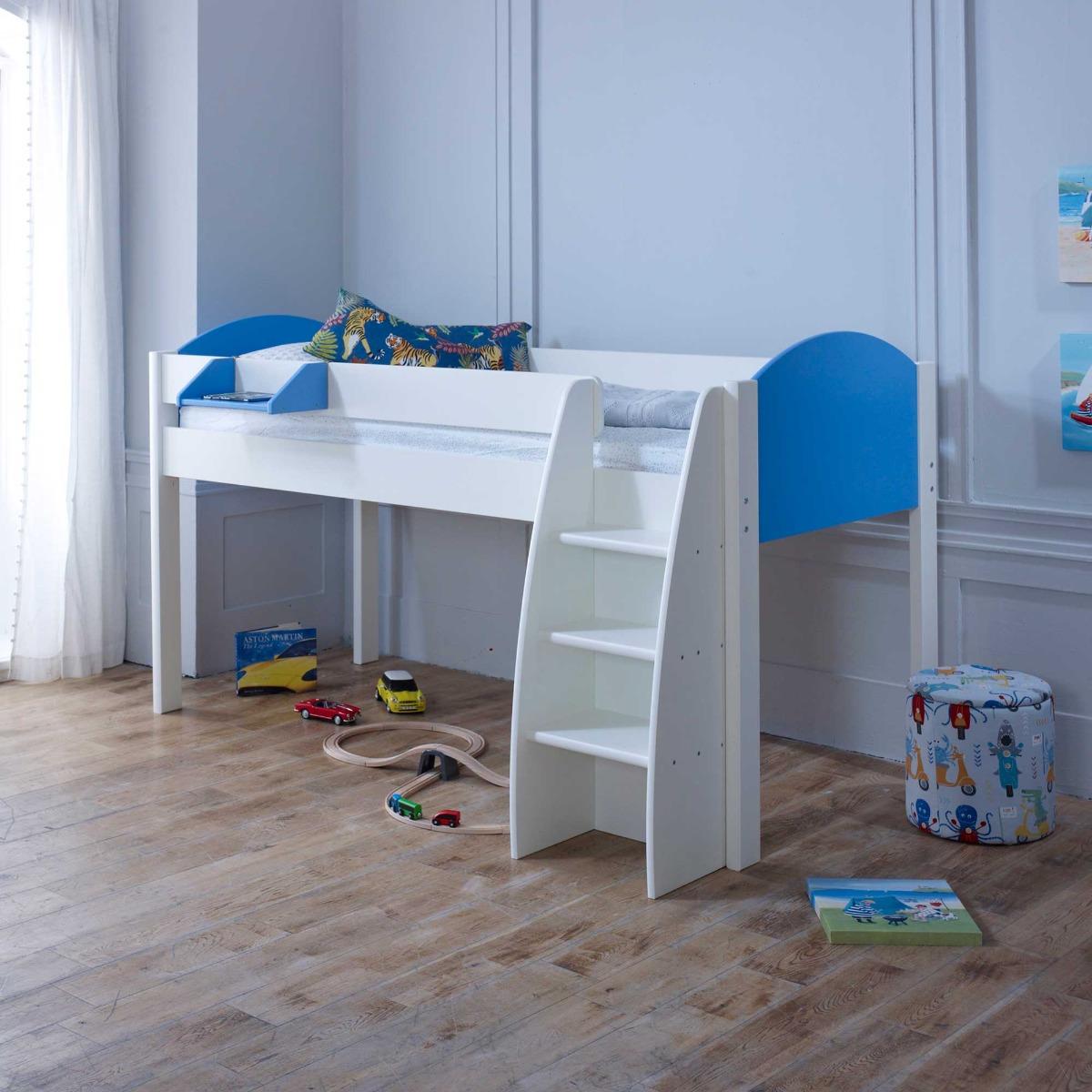 Offering fabulous flexibility for your desired functions, the Eli mid sleeper boasts a raised height bed with room underneath for playtime and practicality. Timeless in its design, the sturdy wooden frame is finished in crisp white, with curved ends and a wide, stable step ladder. Making the most of every inch, the mid sleeper bed is a smart choice for bedrooms that could benefit from a little extra space.