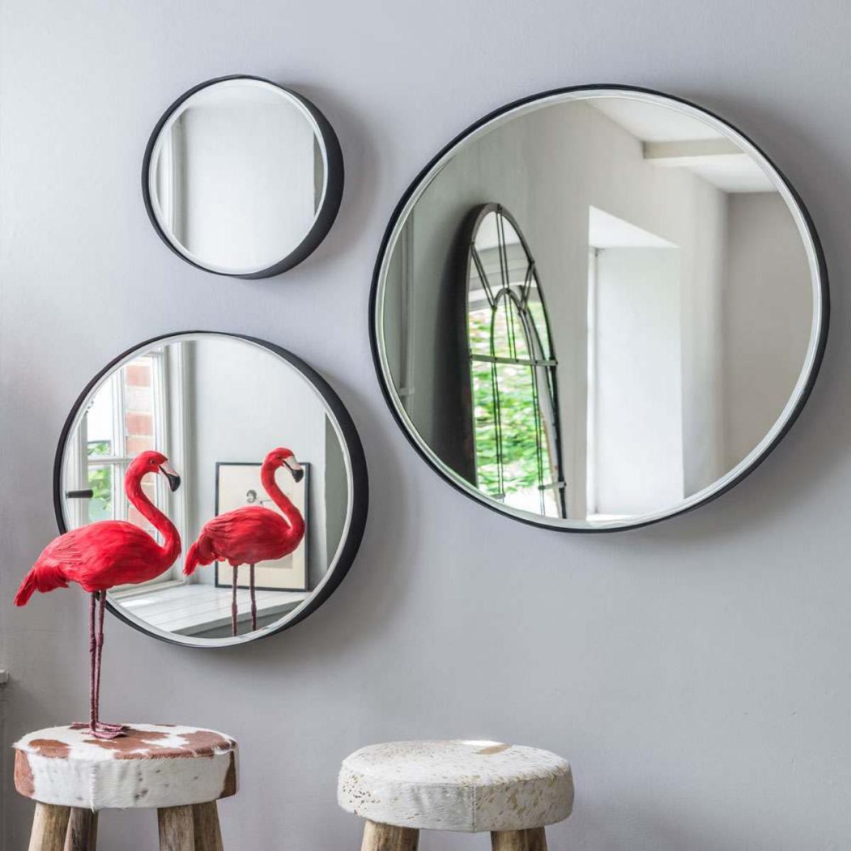 Available in three sizes, these classic Eli Round Mirrors combine facet-cut glass mirror with a deep black PU coated steel frame. They would make an eye-catching statement as a collection or look equally as stunning individually.