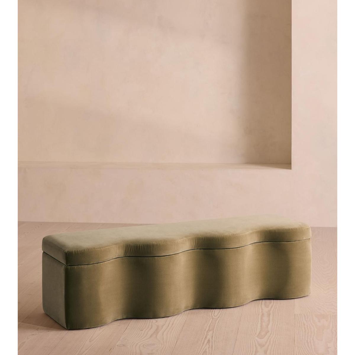 I love the Eli storage bench in lichen velvet for its sculptural yet practical design. Its unique shape and rich velvet finish make it a statement piece that can elevate a hallway, bedroom, or living room. It works particularly well in contemporary or minimalist interiors, adding texture and a touch of luxury without compromising functionality. For styling, consider placing it at the foot of a bed or in front of a sofa to create an inviting spot for putting on shoes or plopping down with a book. It also offers handy storage, making it both beautiful and useful in everyday living spaces.