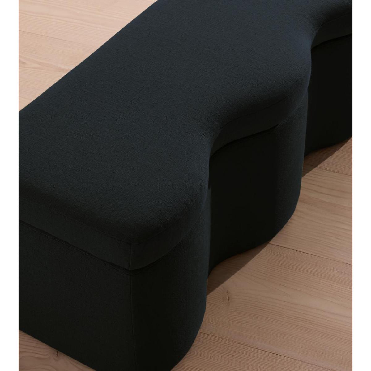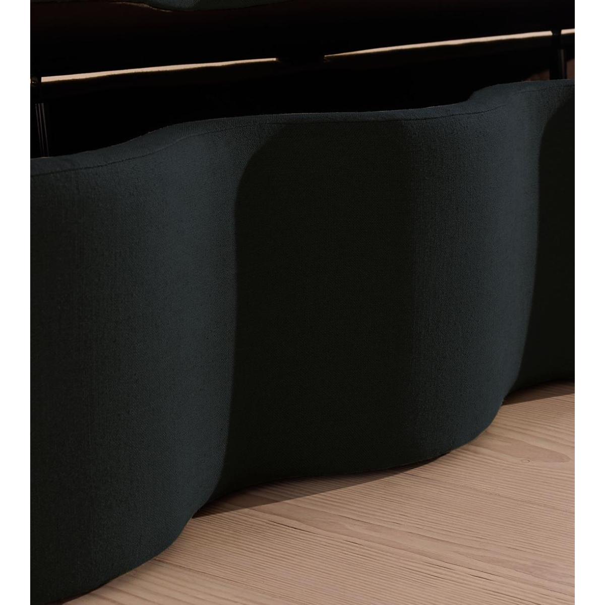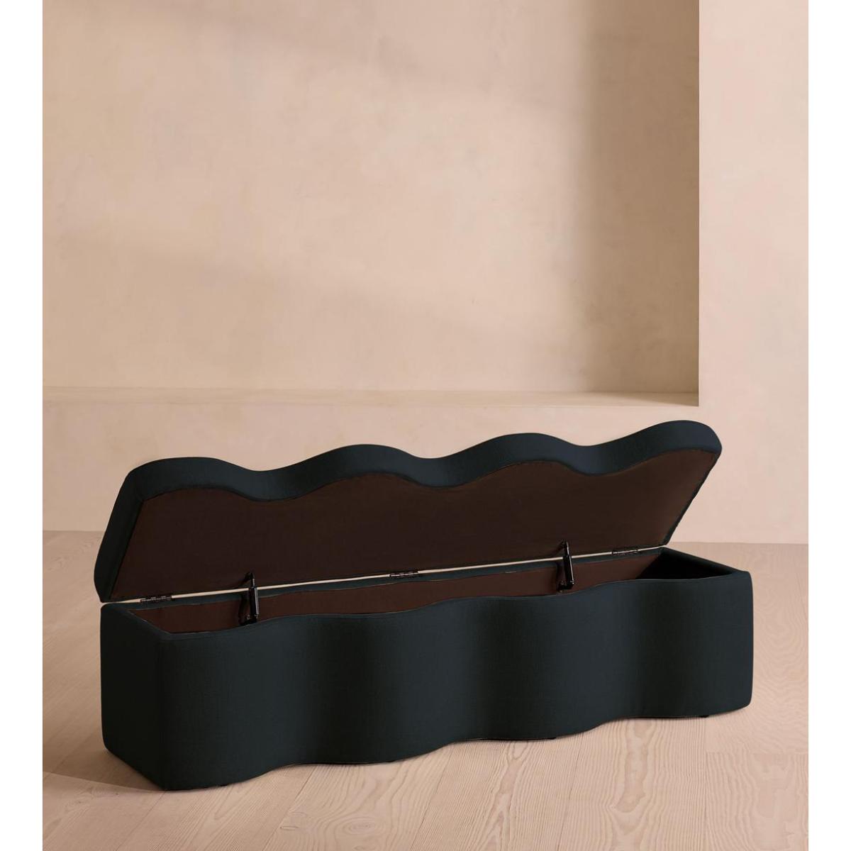 A hardwood frame creates a waved silhouette fitted with a hinged lid that doubles up as seating, thanks to the soft top. Designed to be placed at the foot of your bed, our Eli ottoman has a unique, wave-shaped silhouette crafted from wood and fully upholstered in velvet. Its hinged lid reveals internal storage space for blankets, shoes or clothing, while its bespoke palette is designed to match across our bedroom collection.