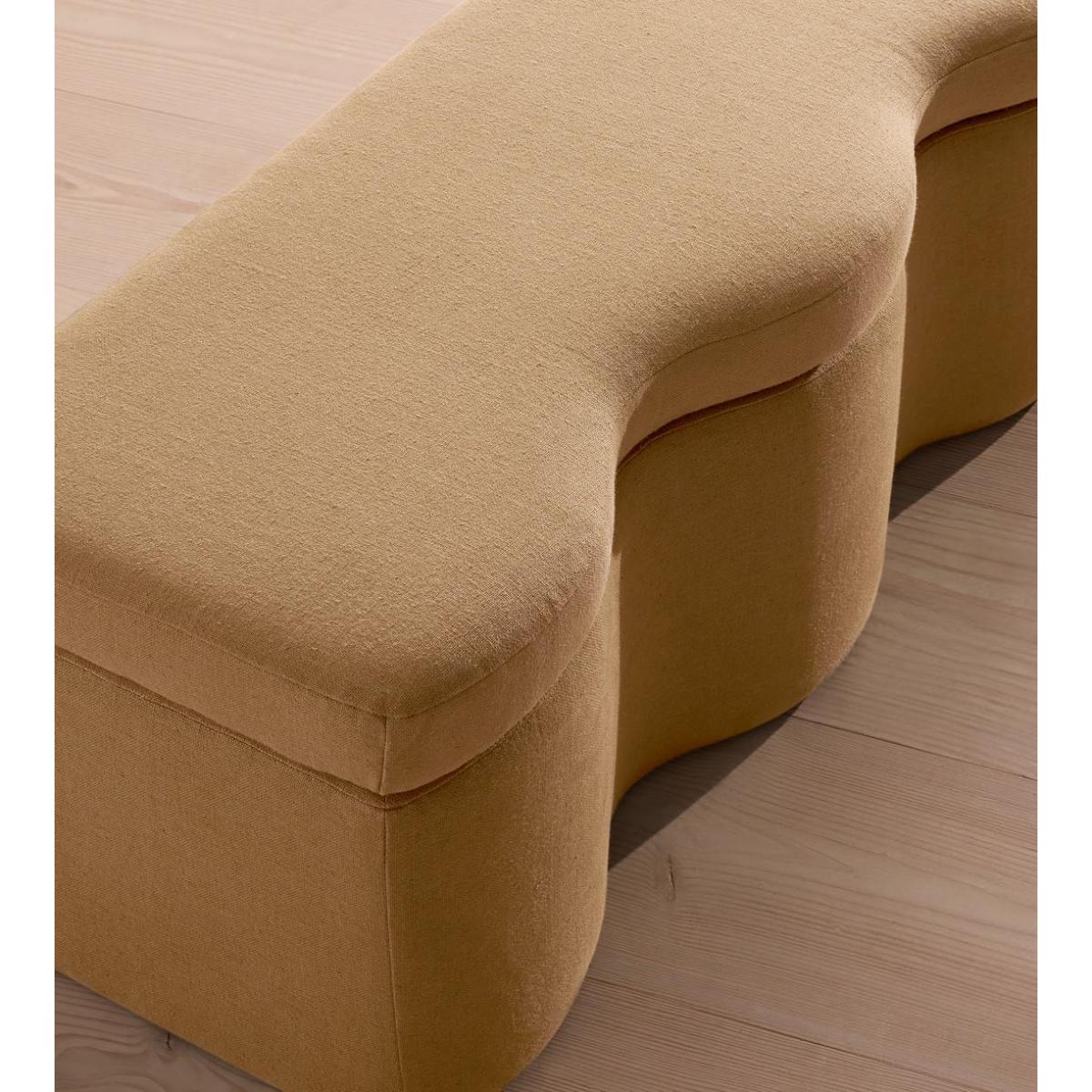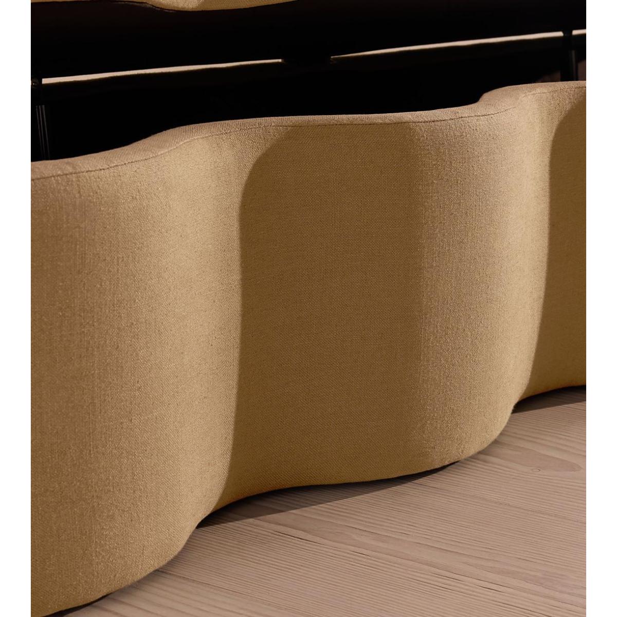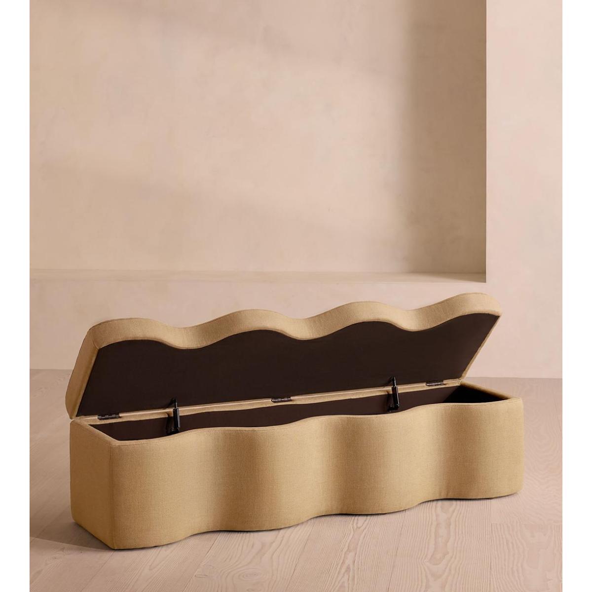 A hardwood frame creates a waved silhouette fitted with a hinged lid that doubles up as seating, thanks to the soft top. Designed to be placed at the foot of your bed, our Eli ottoman has a unique, wave-shaped silhouette crafted from wood and fully upholstered in velvet. Its hinged lid reveals internal storage space for blankets, shoes or clothing, while its bespoke palette is designed to match across our bedroom collection.