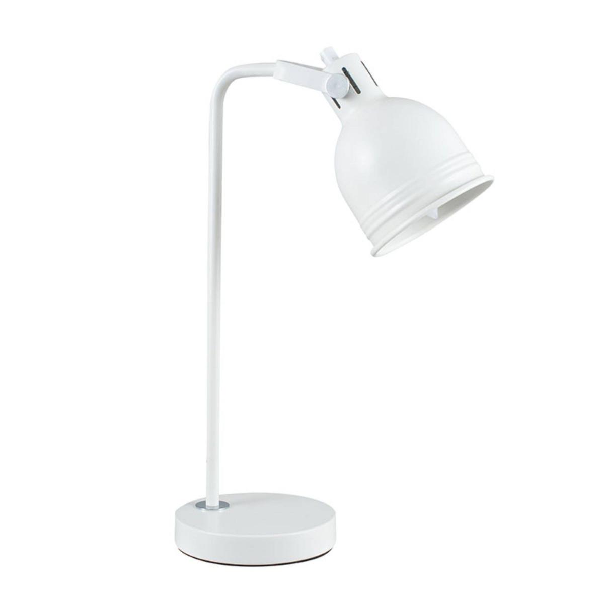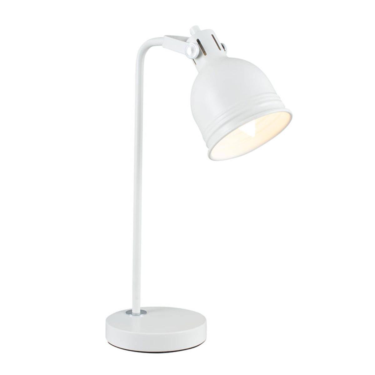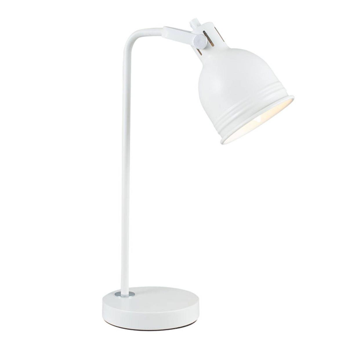 Modern and fresh desk lamp boasting a white and silver finish. A stylish addition to your home, the Elia Task Desk Lamp is both practical and modern. Finished in a soft white paint with silver detailing, this versatile and fresh design lamp is complete with a grey fabric flex. Fully adjustable, this white table lamp can be positioned to illuminate where you need it most. Perfect for use as an office lamp, this task lamp is a smart piece sure to look amazing in living rooms, office or studio spaces or as a bedside lamp. This lamp requires an LED Light Bulb which we offer in both warm white and cool white tones.