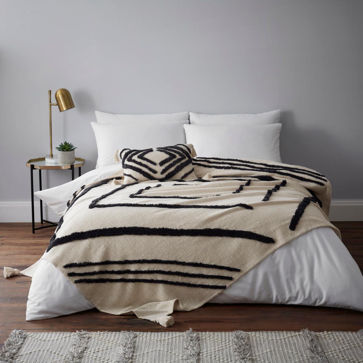 Boasting a geometric charcoal tufted design, this throw is perfect for adding a modern touch to your bedding. Made from 100% cotton this throw is soft and durable. A coordinating cushion is also available. Our throws are not flame retardant and are therefore not suitable as loose covers on upholstered furniture.