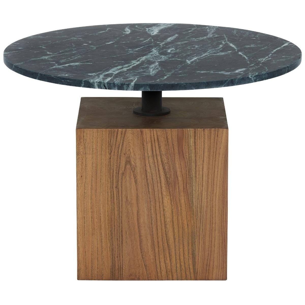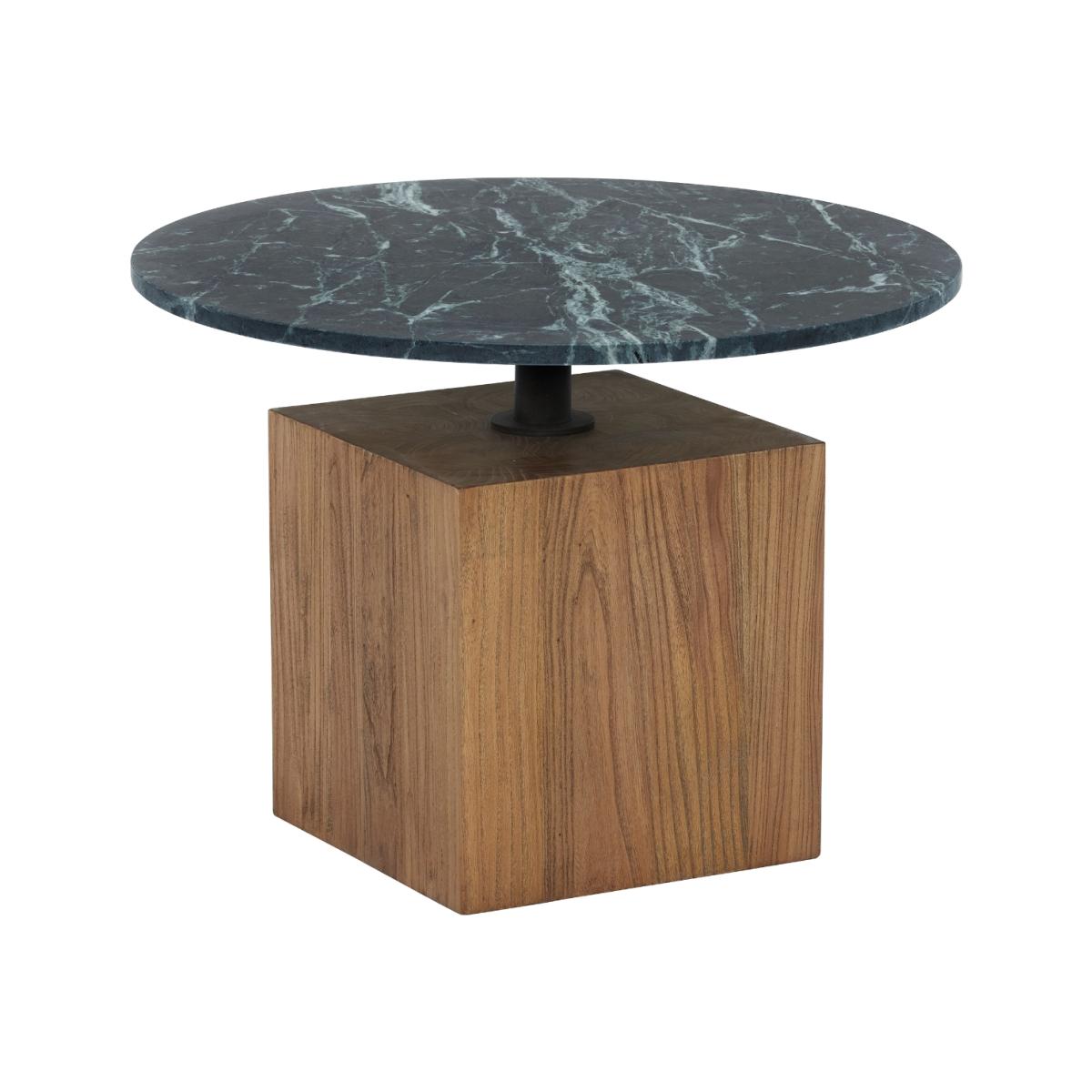 Design. Tradition meets modernity, the Elijah Coffee Table is compact in size but big on style. The thick block base crafted from natural elm wood makes for an unusual design, certainly a sturdy base for you to rest a vase or cup of coffee atop the dark green matt marble.