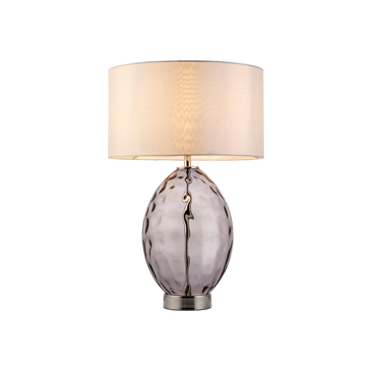 Featuring distinctive dimpled glass, this table light makes a timeless style statement. The vintage white fabric shade pairs perfectly with the bright nickel metalwork, complete with a three-stage touch dimmer switch allowing you to easily adjust the level of light. Available in smokey or champagne lustre dimpled glass.
