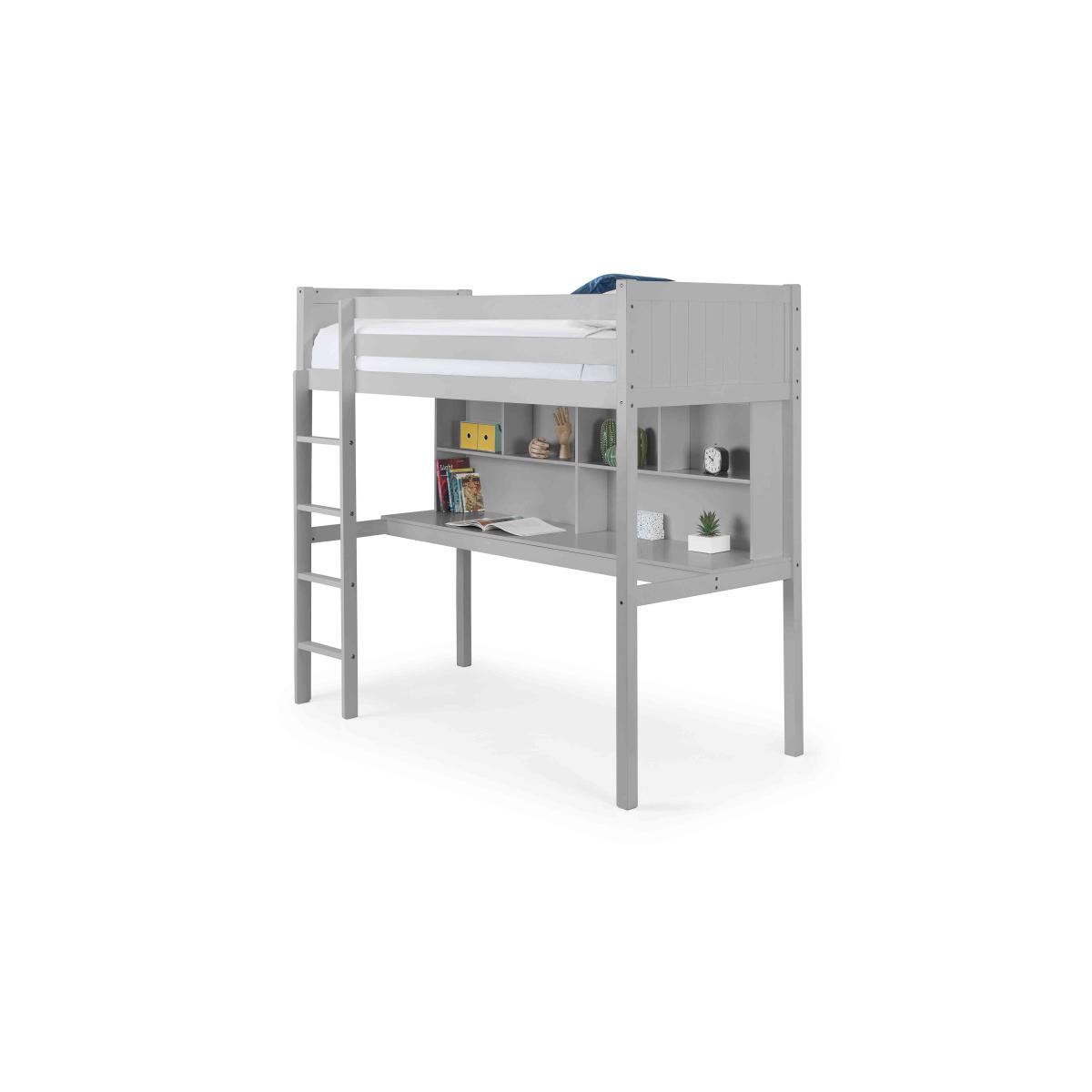 Save on space with the smart Elin High Sleeper. The underbed workstation is the perfect solution to smaller kids bedrooms, leaving much more room for fun and games. Why you'll love it Classic panelled detailing matches any bedroom décor. Crafted from sturdy materials and built to last. Compact 2-in-1 design maximises your space. Available in 3 stylish finishes, white, grey, and anthracite. We also offer a range of kids mattresses that’ll fit perfectly. This kids bed is part of our kids bedroom range from Julian Bowen. What you need to know This bed is not supplied with a mattress included. This product is suitable for children aged 6 and over. Please note this item is self-assembly and will take approximately 60 minutes to assemble. Maximum safe mattress depth is 19 cm. Clearance of 10 cm is required either end for assembly.