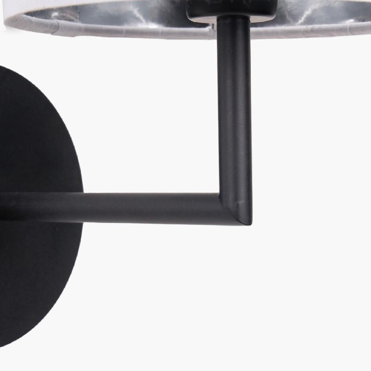 Elin matte black wall light, featuring a contemporary design and an ivory white shade with a silver lining.   Elin matte black wall light, featuring a contemporary design and an ivory white shade with a silver lining.