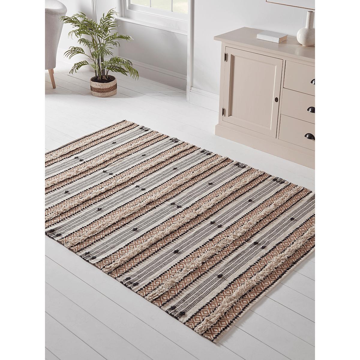 I love this rug for its versatile, understated design - the neutral tones and striped pattern make it a reliable choice for a wide range of interiors. It works particularly well in casual living rooms or bedrooms, where it can add warmth and texture without overwhelming the space. For styling, consider pairing it with natural fibres like linen or wicker furniture to enhance its relaxed vibe, and add some layered textiles such as cushions or throws for a cosy, inviting look. Practical tip: since it’s a striped pattern, it’s excellent at hiding foot traffic and minor stains, making it a smart pick for busy areas.