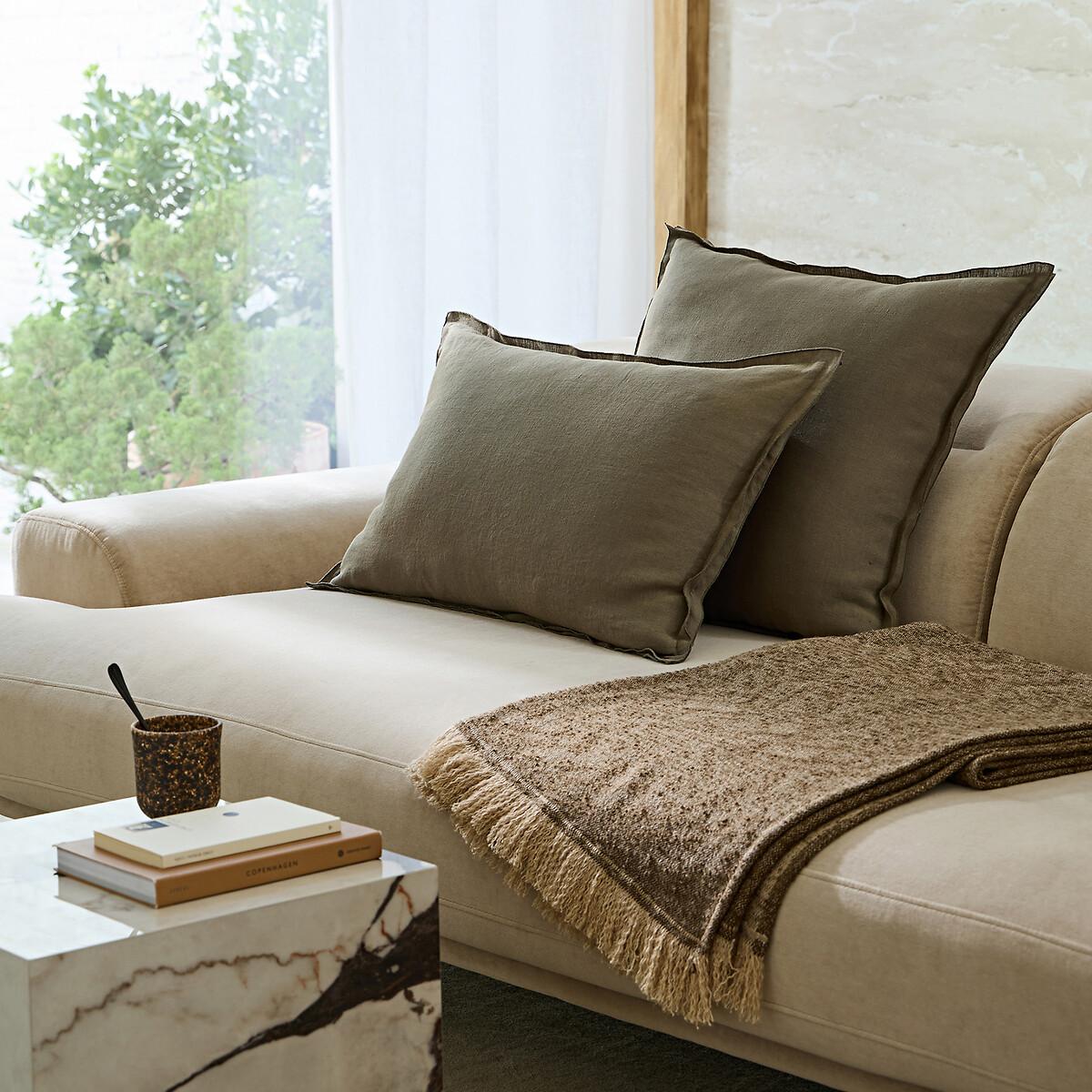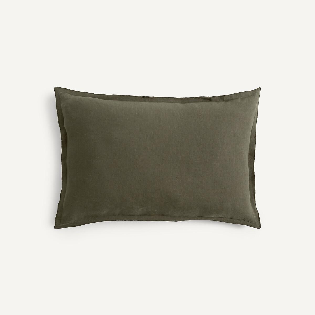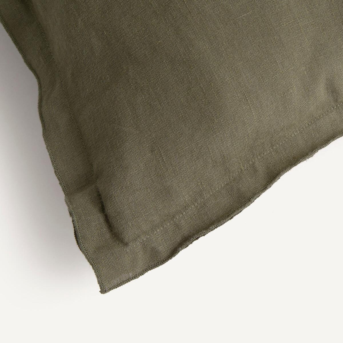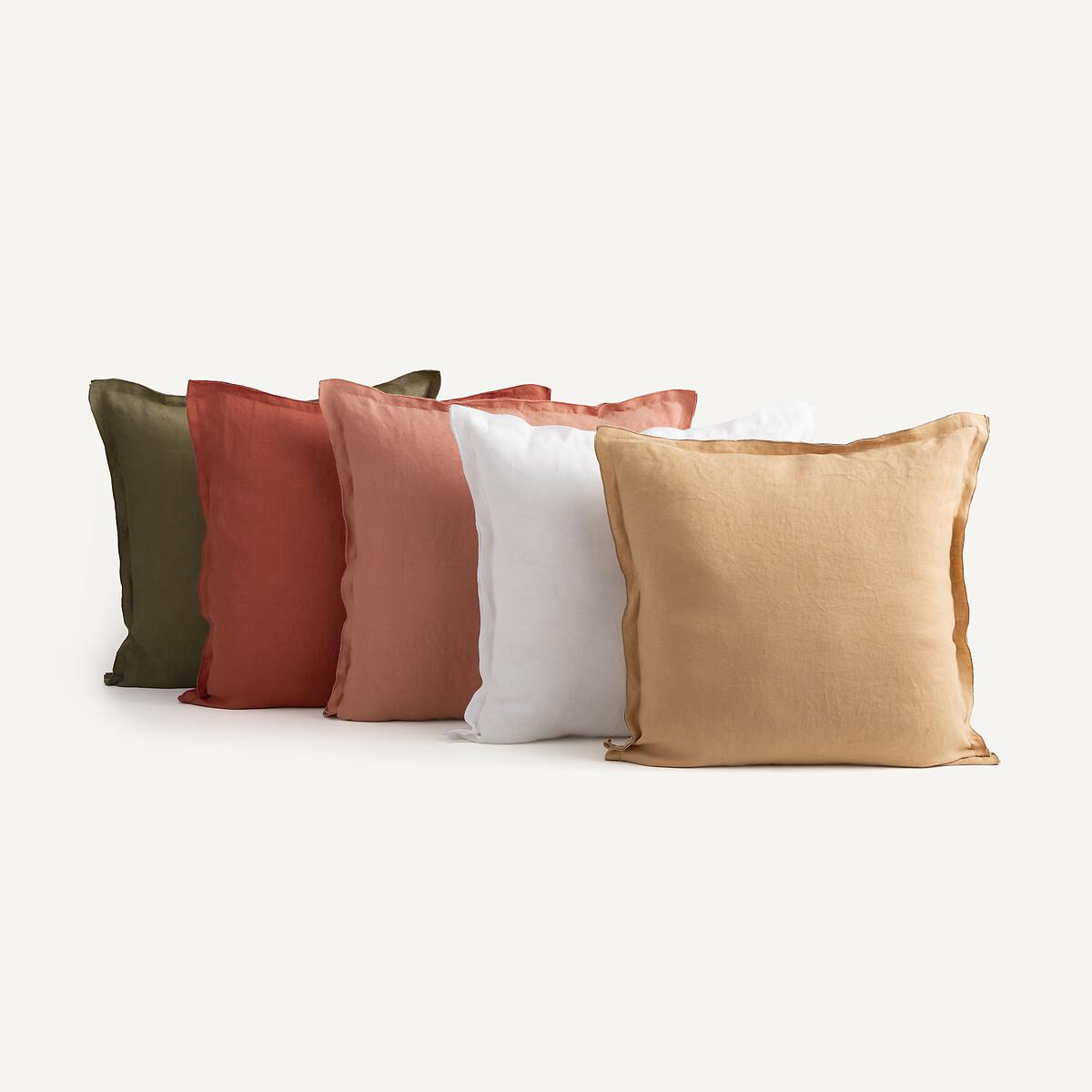 Made from washed linen, the Elina cushion cover is available in a palette of contemporary shades, enhanced by a double ruffle finish. A unique blend of authenticity, comfort and elegance, linen is fresh in summer and comfortable in winter.. Produced in Europe, washed linen is easy care and lightly creased. Washed for more softness, it becomes more tactile and more beautiful wash after wash.. Product Details • 100% linen, 165g/m² • Washed linen • Tone-on-tone bourdon edging and double ruffle finish • Invisible tone-on-tone zip-up closure. Care Advice Follow our care tips to maintain the quality of your linens • Machine washable at 30°C • Tumble dry at low temperature • Iron at average temperature. Dimensions • 50 x 50cm • 60 x 40cm • 70 x 90cm • MADE IN PORTUGAL. • OEKO-TEX® Standard 100. Standard 100 certification by OEKO-TEX® tests textile products for harmful substances via an independent, international label.