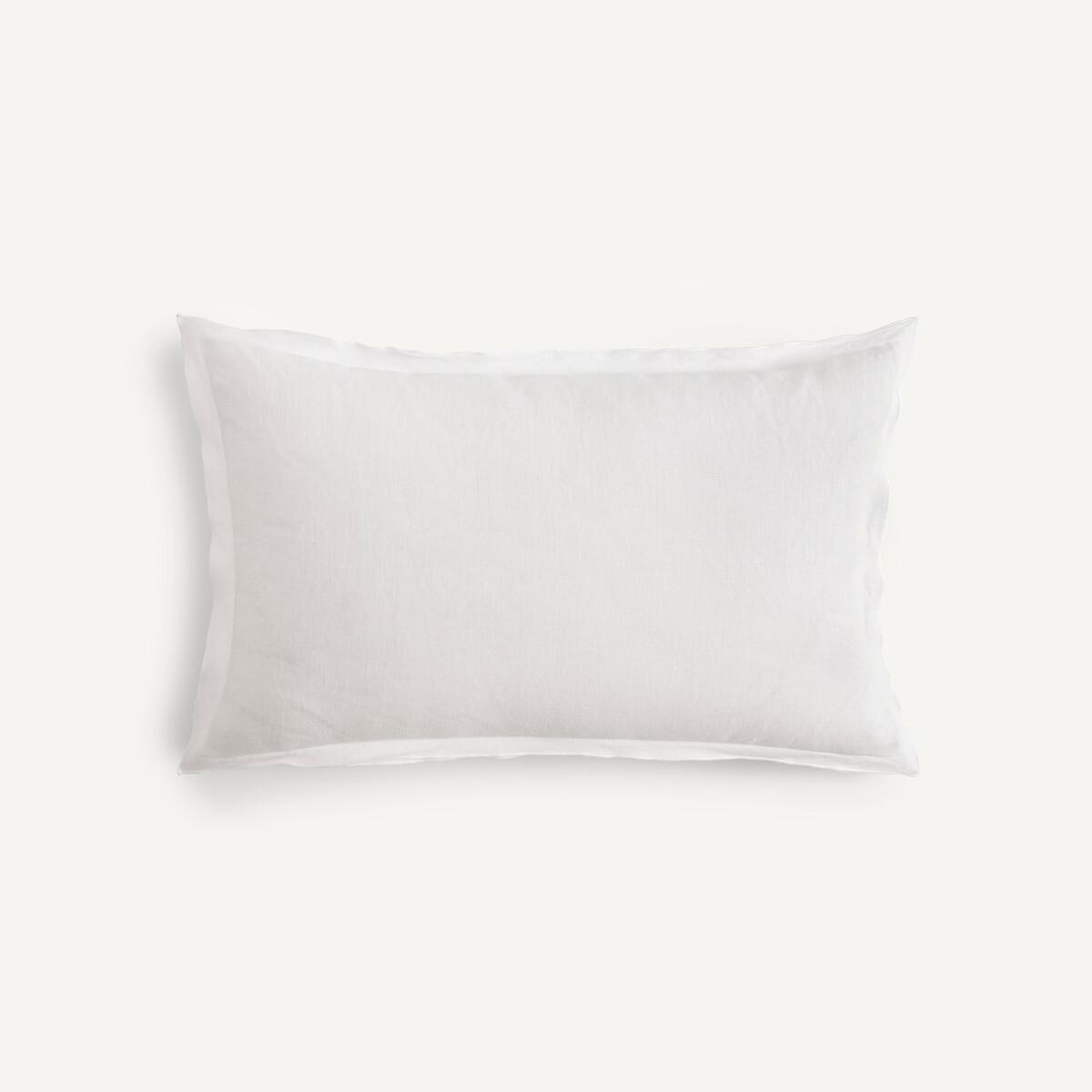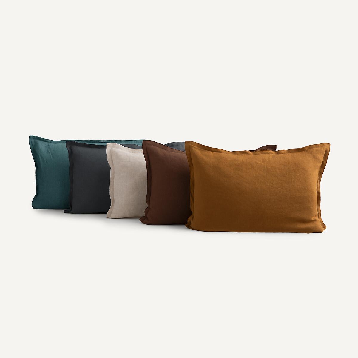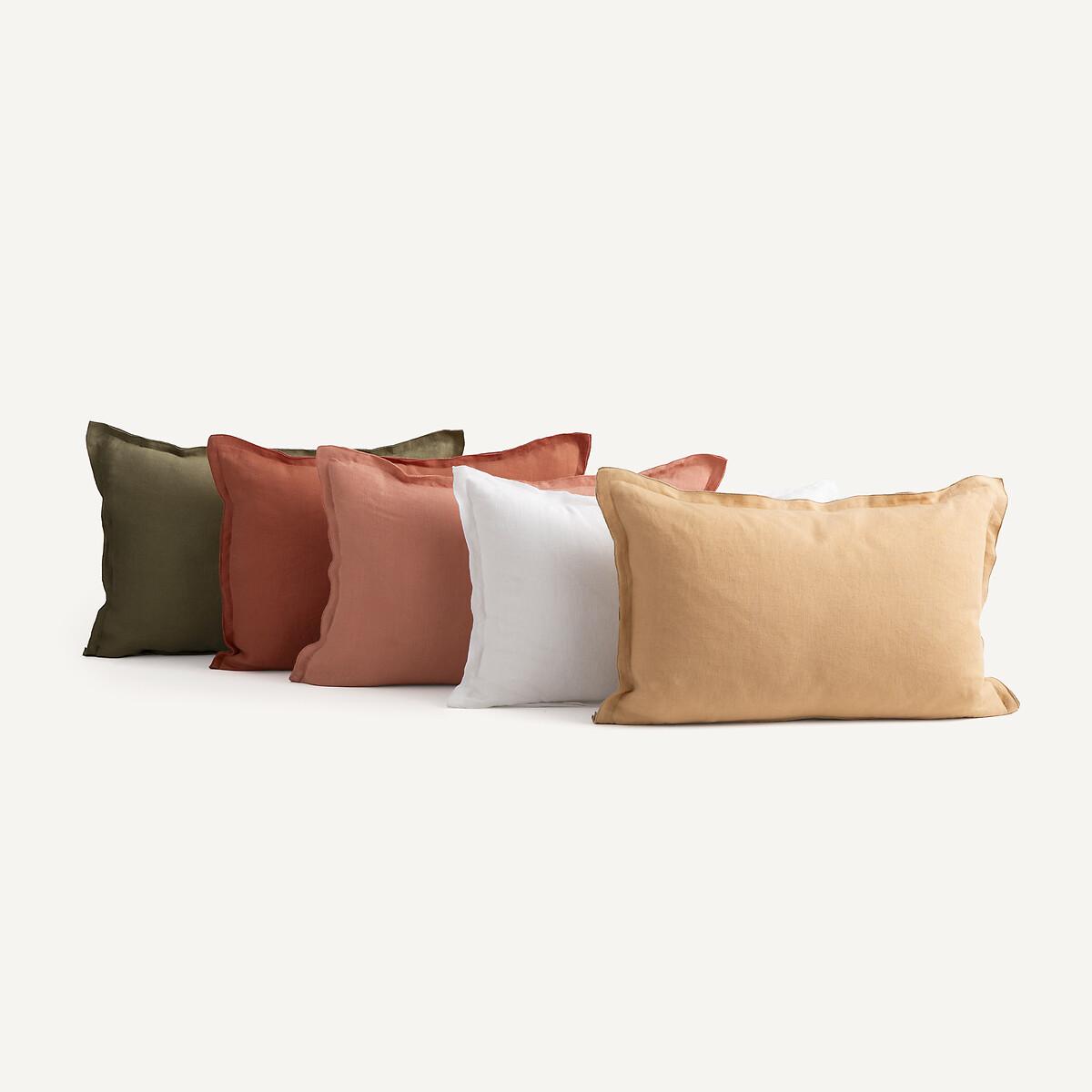 Made from washed linen, the Elina cushion cover is available in a palette of contemporary shades, enhanced by a double ruffle finish. A unique blend of authenticity, comfort and elegance, linen is fresh in summer and comfortable in winter.. Produced in Europe, washed linen is easy care and lightly creased. Washed for more softness, it becomes more tactile and more beautiful wash after wash.. Product Details • 100% linen, 165g/m² • Washed linen • Tone-on-tone bourdon edging and double ruffle finish • Invisible tone-on-tone zip-up closure. Care Advice Follow our care tips to maintain the quality of your linens • Machine washable at 30°C • Tumble dry at low temperature • Iron at average temperature. Dimensions • 50 x 50cm • 60 x 40cm • 70 x 90cm • MADE IN PORTUGAL. • OEKO-TEX® Standard 100. Standard 100 certification by OEKO-TEX® tests textile products for harmful substances via an independent, international label.