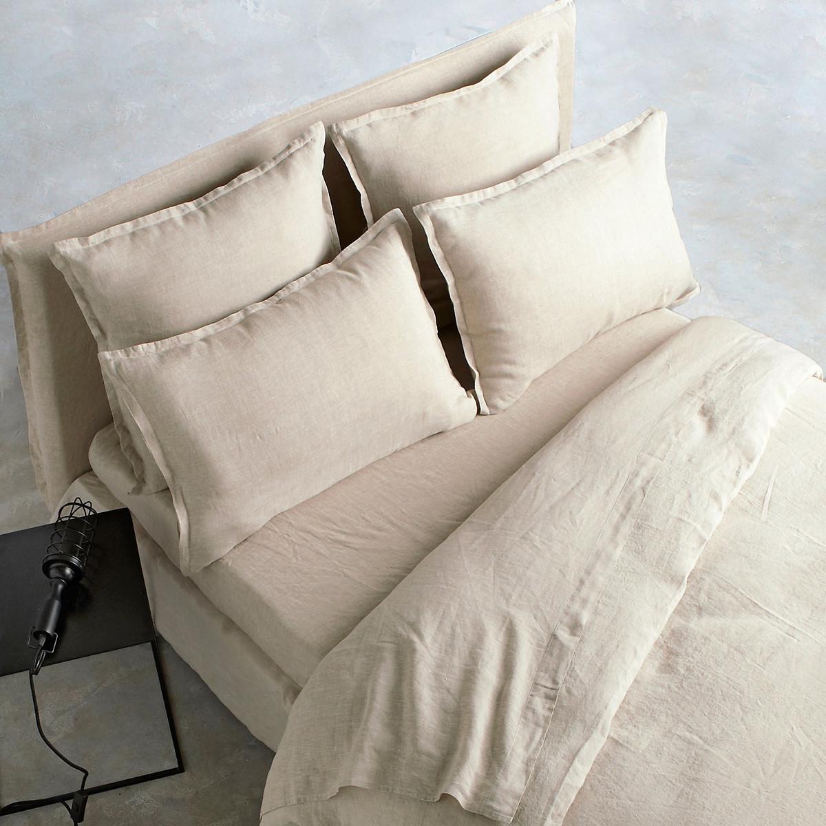 The Elina washed linen sheet. A unique blend of authenticity, comfort and elegance, linen is fresh in summer and comfortable in winter.. Grown in Europe, washed linen is easy to live with and slightly wrinkled since it does not iron. Washed for more softness, it becomes more tactile and more beautiful wash after wash.. Match this pillowcase with the rest of the bedding in the range for a stylish bedroom. And you can mix and match it with different colours and styles from our other bedding ranges when you want to change things up and create your own unique look. Product Details • 100% linen • Washed linen Care Advice Follow our care tips to maintain the quality of your laundry • Machine washable at 40°C • Tumble dry at low temperature • Iron at high temperature • Do not dry clean. Dimensions • 180 x 290cm: Single • 240 x 300cm: King • 270 x 310cm: King • MADE IN PORTUGAL. • OEKO-TEX® Standard 100. Standard 100 certification by OEKO-TEX® tests textile products for harmful substances via an independent, international label.