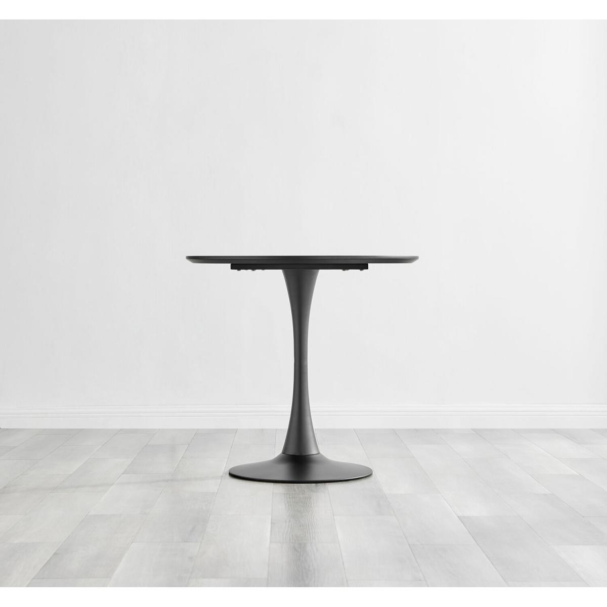 The Elina round marble-effect dining table is a statement piece for the interiors connoisseur. It oozes luxury and opulence. Featuring an 80cm x 80cm round tabletop made from marble effect veneer (which is right on trend and easy to maintain), it's a compact 2 seater dining table perfect for smaller spaces and more relaxed intimate dining. Sitting on a single curved pedestal leg in black powder-coated metal. A sleek, stylish dining table with minimalist industrial vibes. This beautifully designed dining table will set the scene for a stylish and luxurious room. Want to complete the look Shop our stylish dining chair range for ultimate ergonomic comfort.