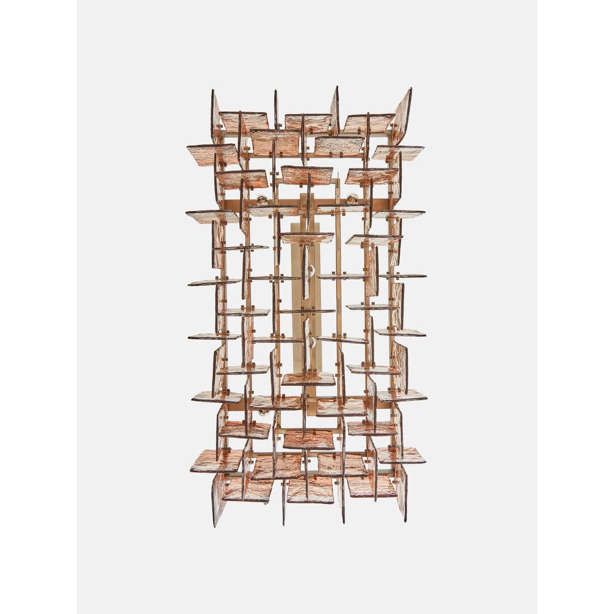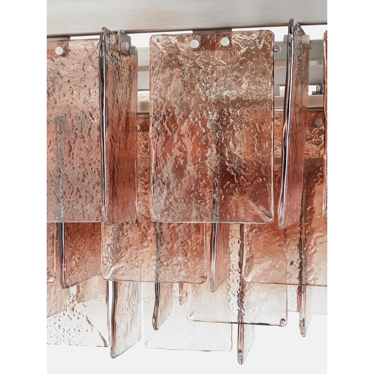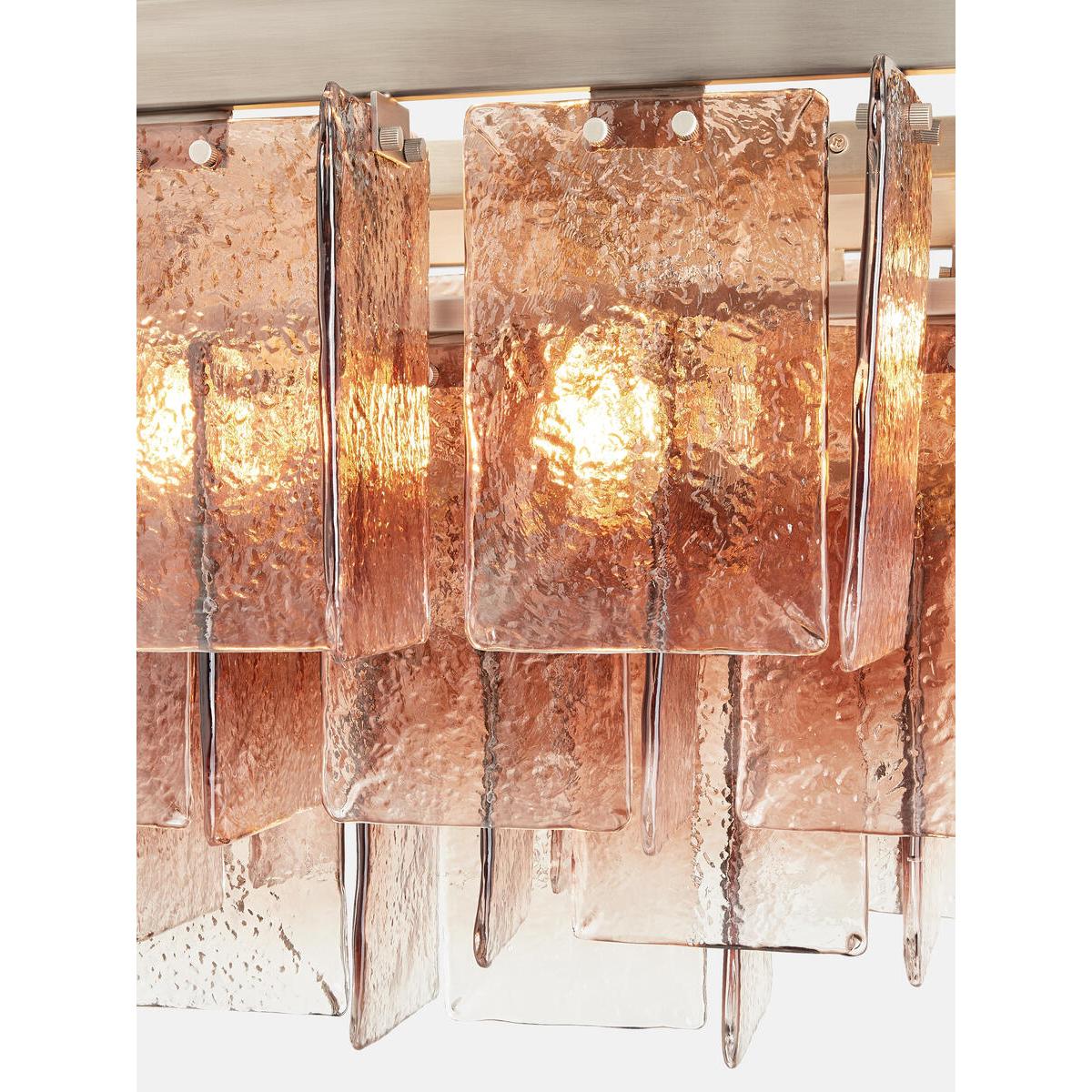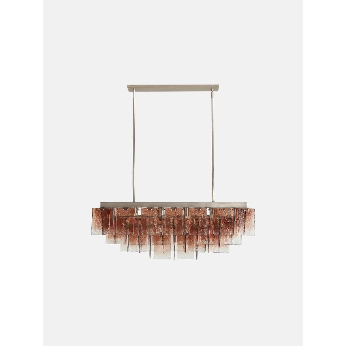 The Elisa chandelier will bring a sense of decoration to the simplest of rooms, without feeling intimidating. Designed to sit above a dining table with a nickel-finish frame, this rectangular lighting style echoes the 1970s-inspired interior of 180 House, where panels of light to dark textured glass are arranged in an intersection format. When grouped together, these panels create an ombre effect, resulting in a warmer lighting scheme for the home. Tiered glass chandelier Textured ombre glass panels Nickel-finish frame Rectangular over dining format Recommended bulb: UK Tala 3W Porcelain I LED E14 Ceiling rose dimensions:H2 x W66 x D13cm Inspired by 180 House