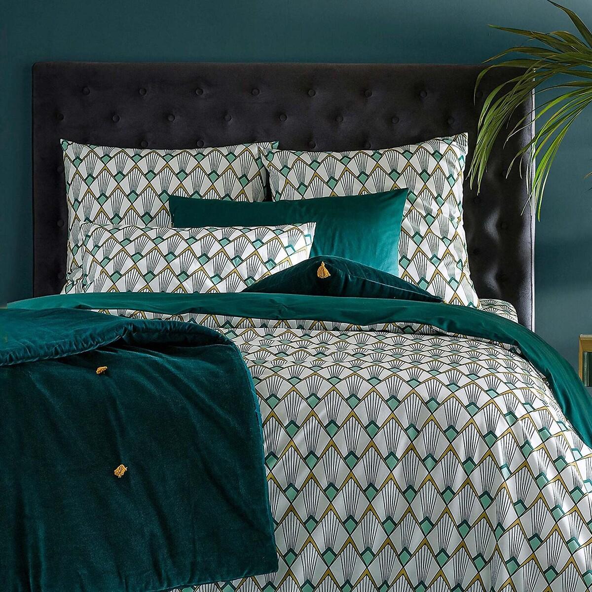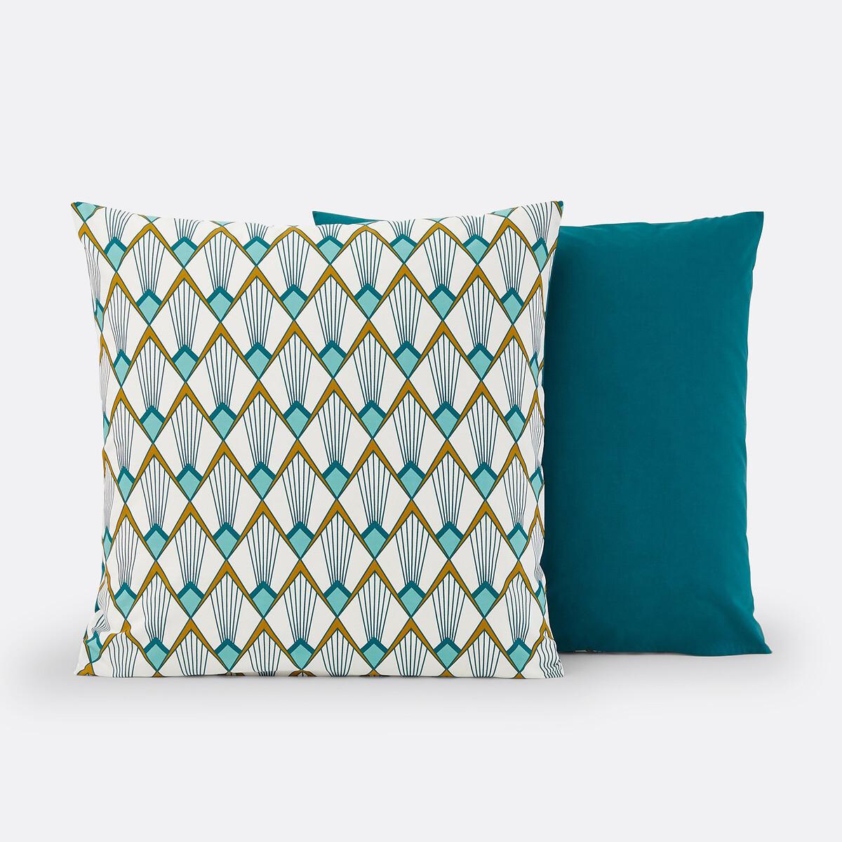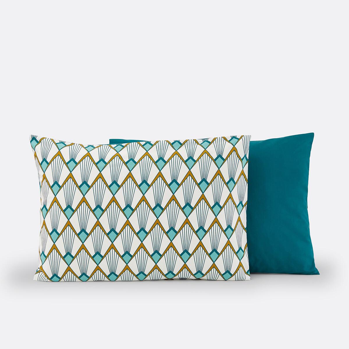 The Elisa patterned percale pillowcase. This bedding set in super soft cotton percale has an Art Deco-inspired geometric design in rich colours. The cotton percale offers a pleasant feeling of freshness and lightness. Its tight weave makes it particularly soft for premium comfort. A matte and smooth material that will soften over time. Product Details • 100% cotton • Percale • 180 thread count: The higher the thread count, the higher the quality of the weave • Sack shape • Front: printed. Back: plain. Care Advice • Machine washable at 60°C • By washing your laundry at 40°C instead of 60°C, you limit energy consumption. Dimensions • 50 x 70cm: Rectangular pillowcase • 63 x 63cm: Square pillowcase • OEKO-TEX® Standard 100. Standard 100 certification by OEKO-TEX® tests textile products for harmful substances via an independent, international label.