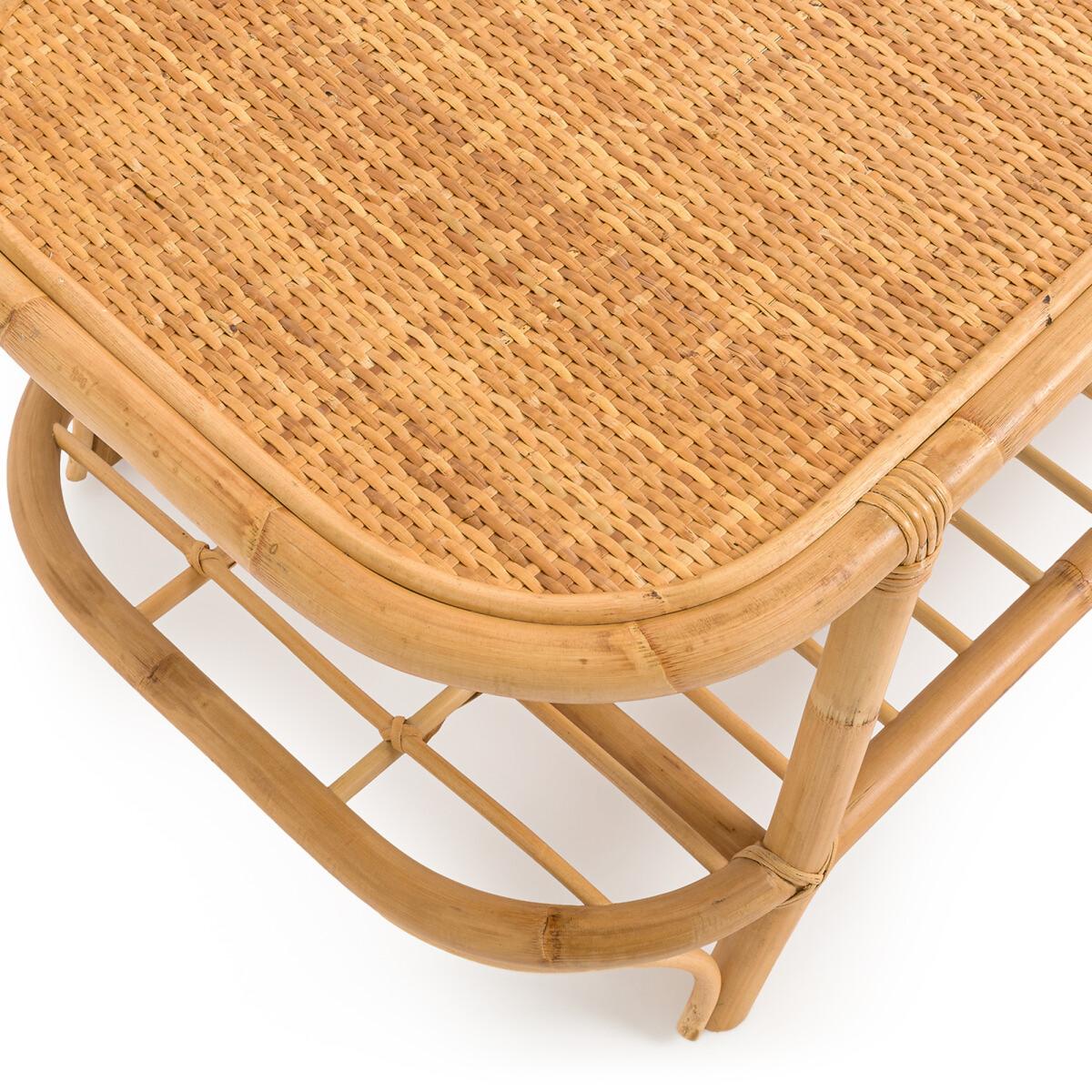 With an updated vintage style, lower level in openwork rattan and upper top in woven rattan cane, Elisa allows you to enjoy sunny days outdoors. A double level coffee table ideal for the garden as well as the living room.